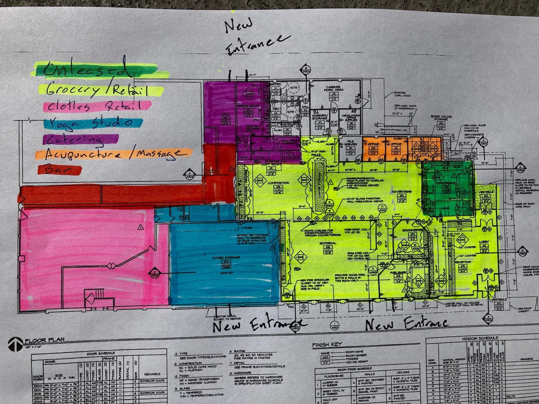The grocery and deli will occupy the east-facing section of the building, and they will remove an interior wall to open the space up for a grocery. Additional entry doors will also be added to the building along Third Street. Possible seating for the deli along the sidewalk may be added as well.