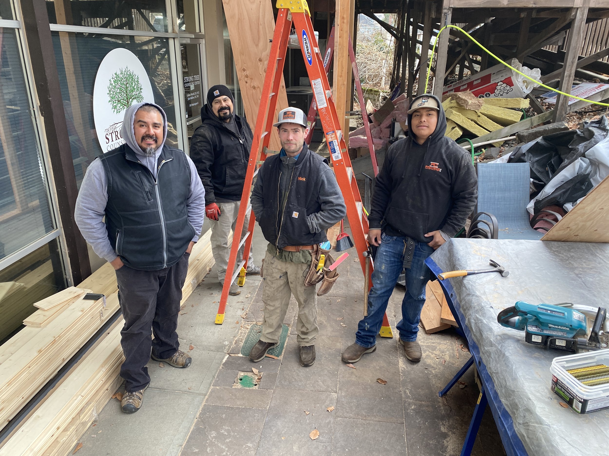 Jimmy Pacheco, Javier Salgado, Nick Berthold and Brayan Chamonica of Pacheco Construction working in Downtown The Dalles. Pacheco- Eagles all the way.