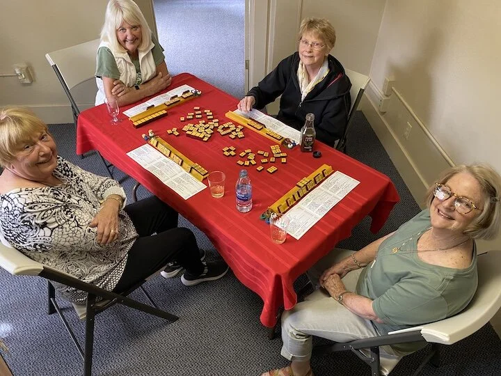 Sally Fasulo, Bonnie Foote, Ann Ketchum, and Connie Christensen work away at the wall of Mah Jongg tiles on Wednesday Afternoon, May 5 at 409 Lincoln Street. The group has been getting together on Wednesdays to play the Chinese game for more than two decades.