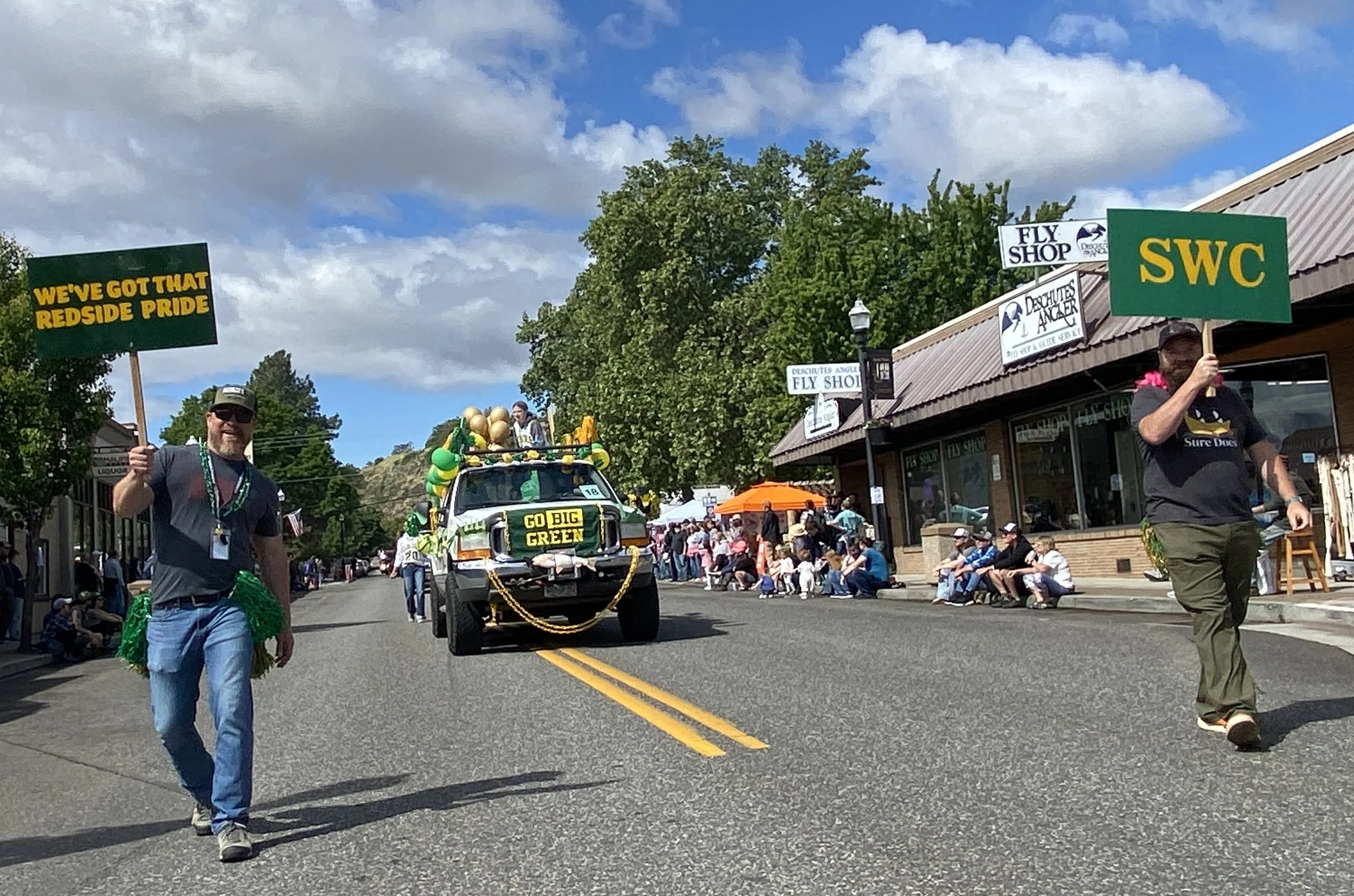 Redside Pride was on display with this Go Big Green float as the South Wasco County Middle and High School theater program put on a one act play this afternoon.