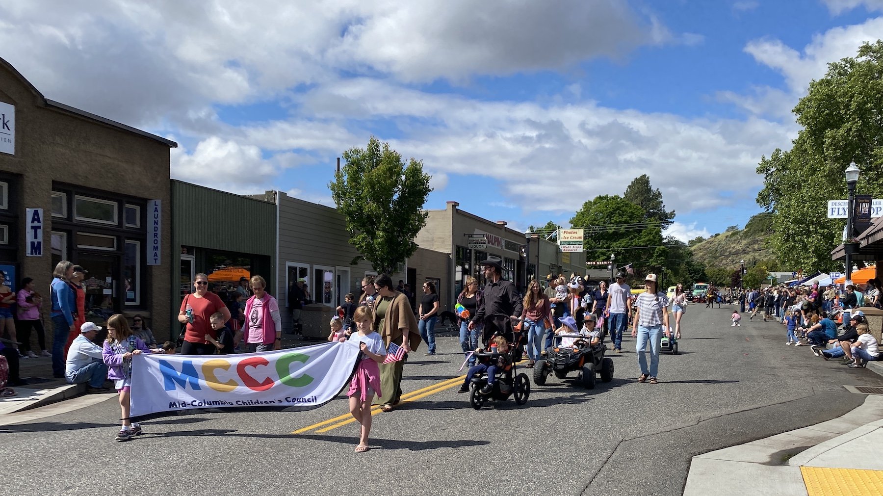 Maupin, Ore., May 17, 2025 — Great weather and great events including a parade, face painting, balloon animals, a magician, one-act play and a band to finish it off later this afternoon helped stack the streets with people for Maupin Daze today.
