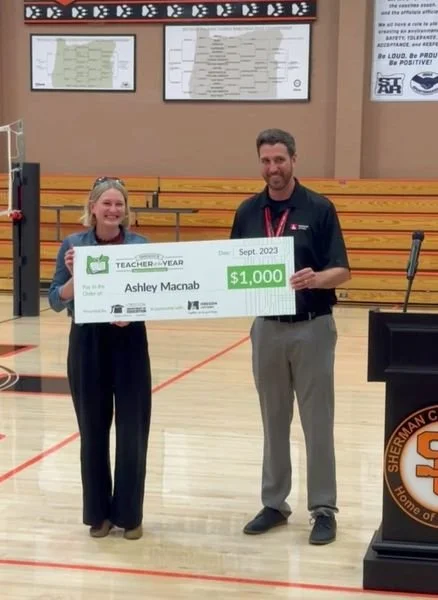 Sherman County School’s Ashley Macnab also won the coveted title for her amazing work with students at the school in Moro. She is a first-grade teacher.