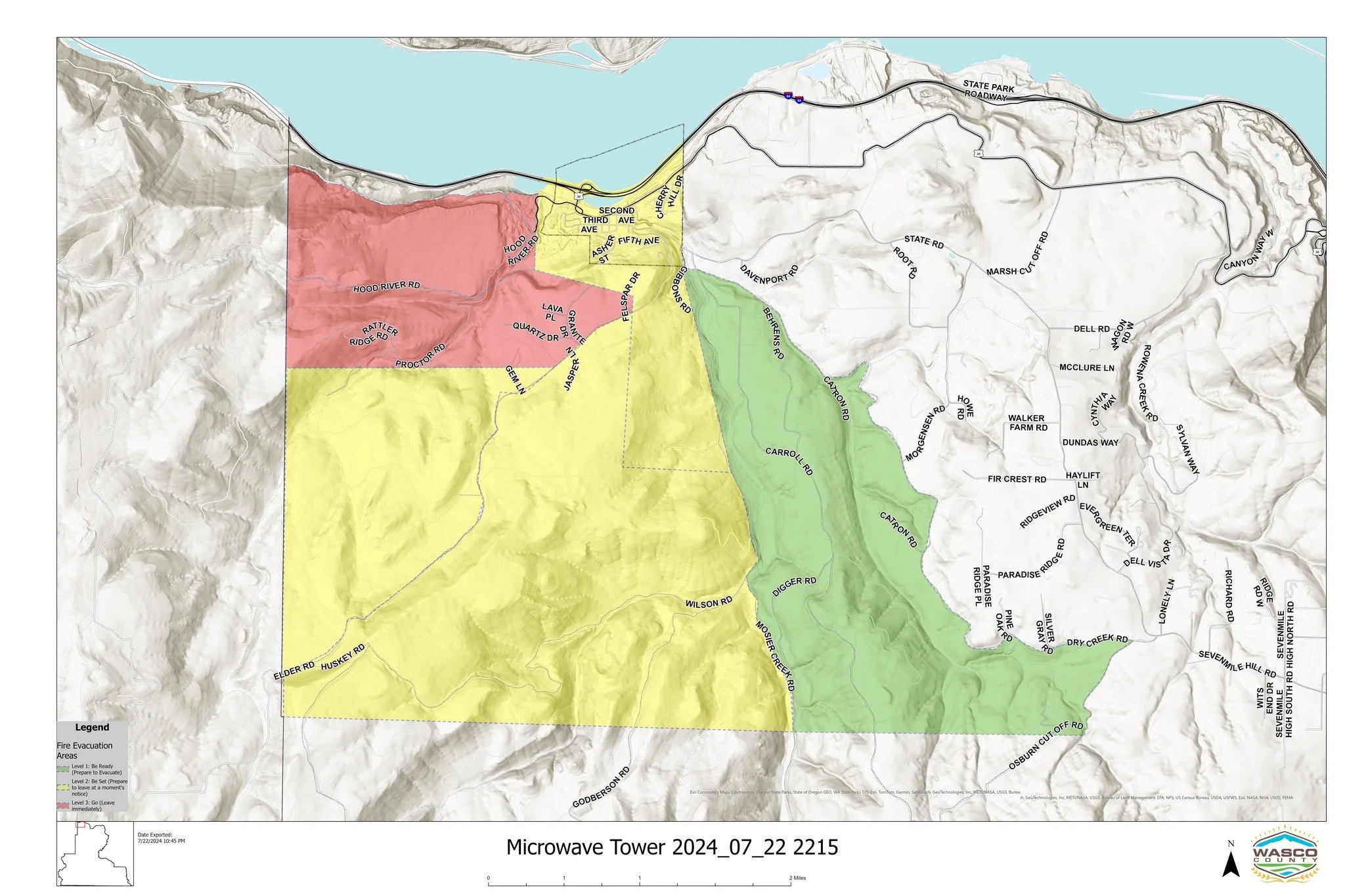 LEVEL 3 - GO NOW! Evacuate immediately from Hwy 30 south the Proctor Rd., east to Huskey Rd and the border of the City of Mosier and west to the Hood River County line.