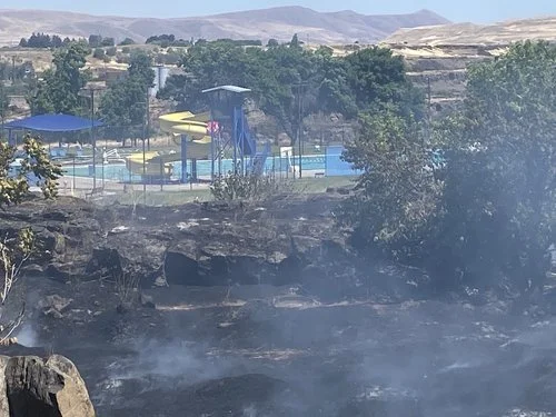 Scorched earth - fire last August swept through the drylands that are now part of a Mountain Bike Skills Park behind The Dalles Aquatic Center. This fire prompted construction.