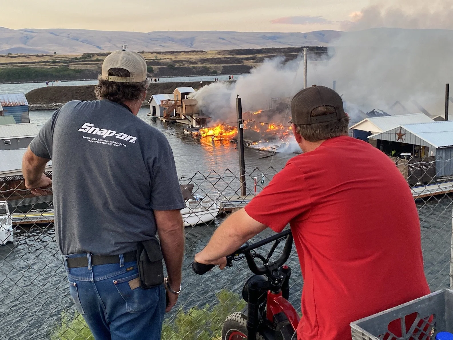 Mid-Columbia Fire and Rescue as well as multiple agencies had fire engines and apparatus on hand, but it appeared they were limited in fighting the blaze as access was limited to narrow docks. Much water was being used to cool down properties near the blaze to prevent the spreading of the fire.