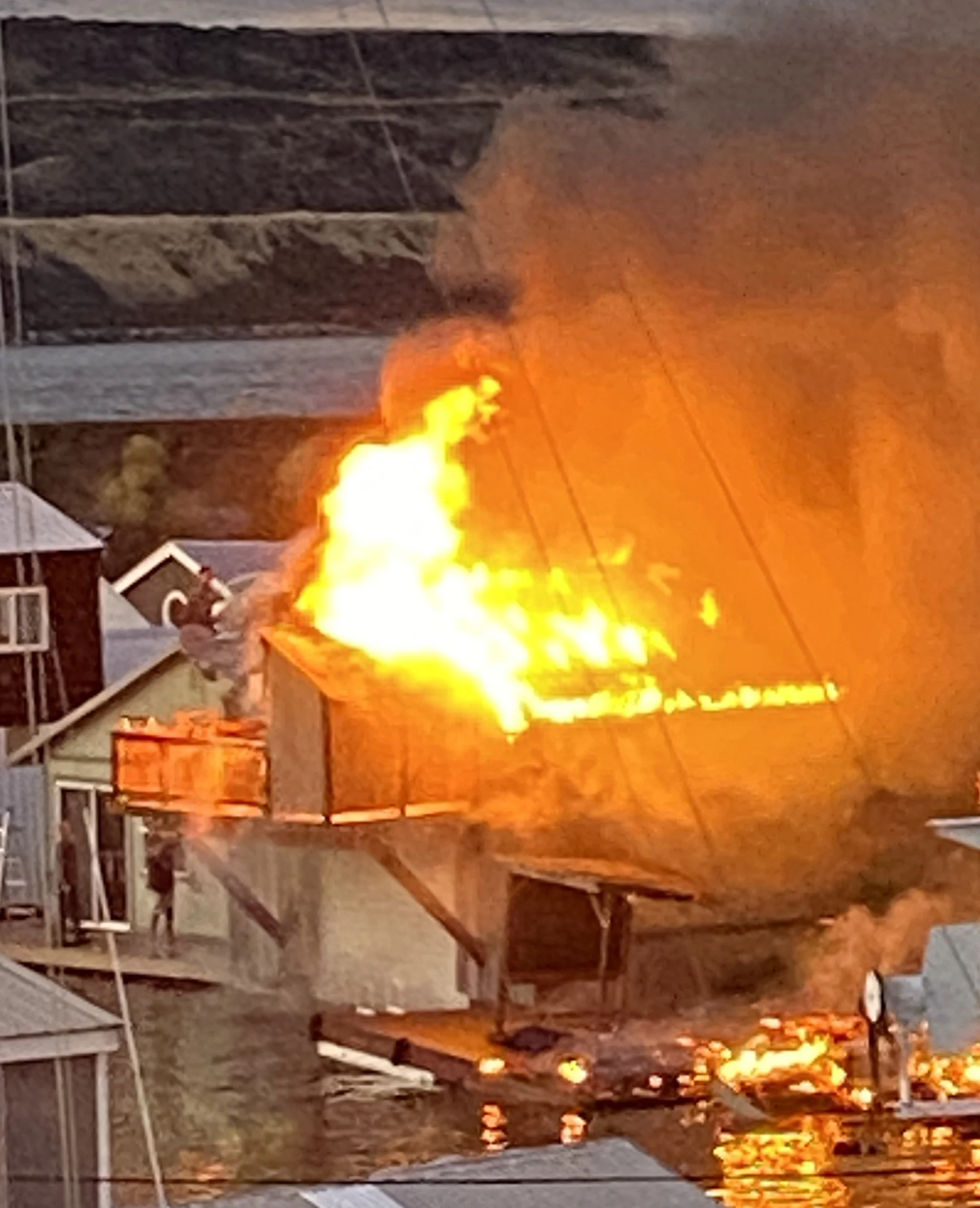 Multiple boathouses destroyed by fire at The Dalles Marina tonight, Aug. 1