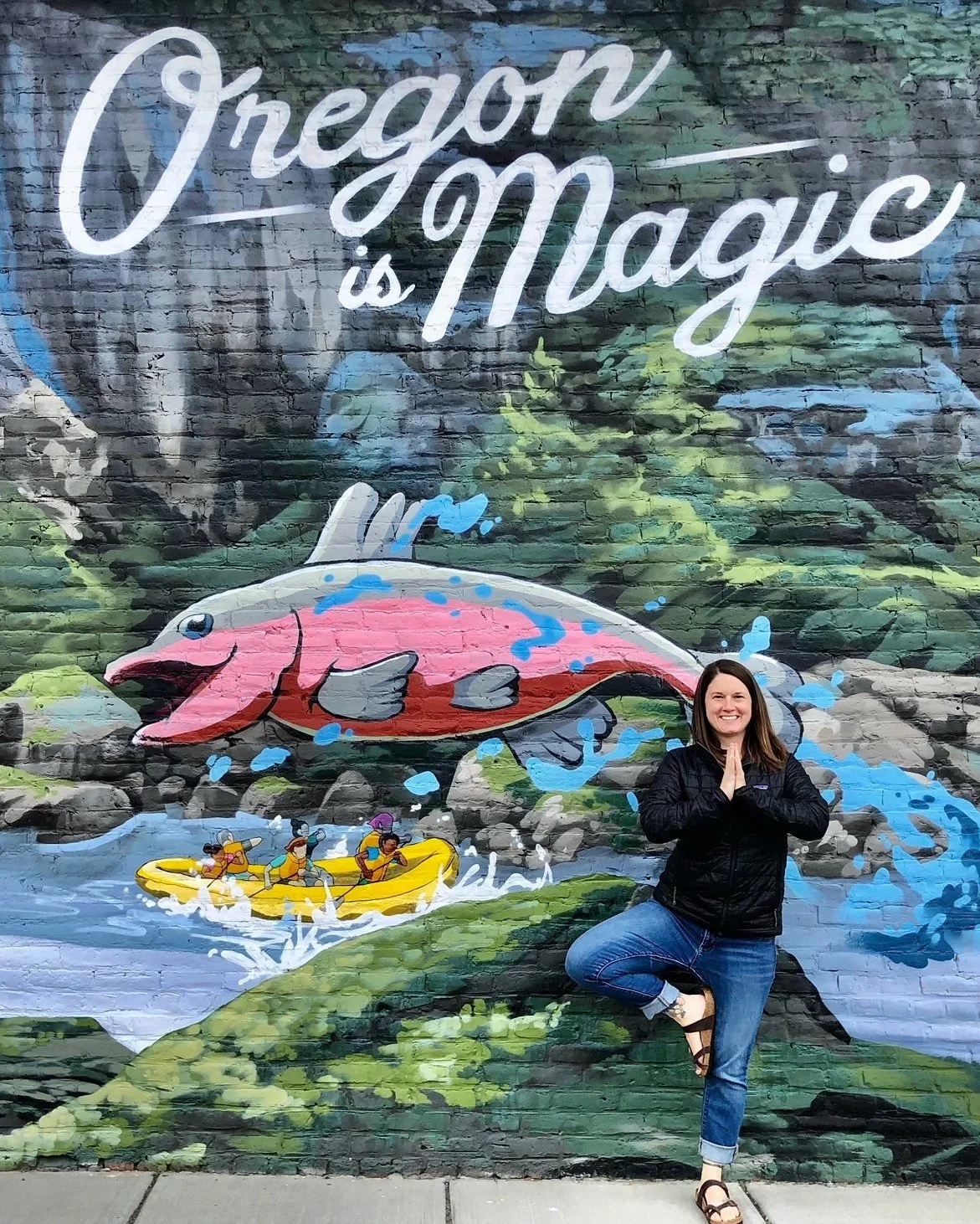 Founder of Wild Bloom Yoga Lexi Stickel strikes a pose at one of her favorite murals in The Dalles. You may run into Stickel as she and her students are hiking a trail in hunt of a pose and a mindful breath.