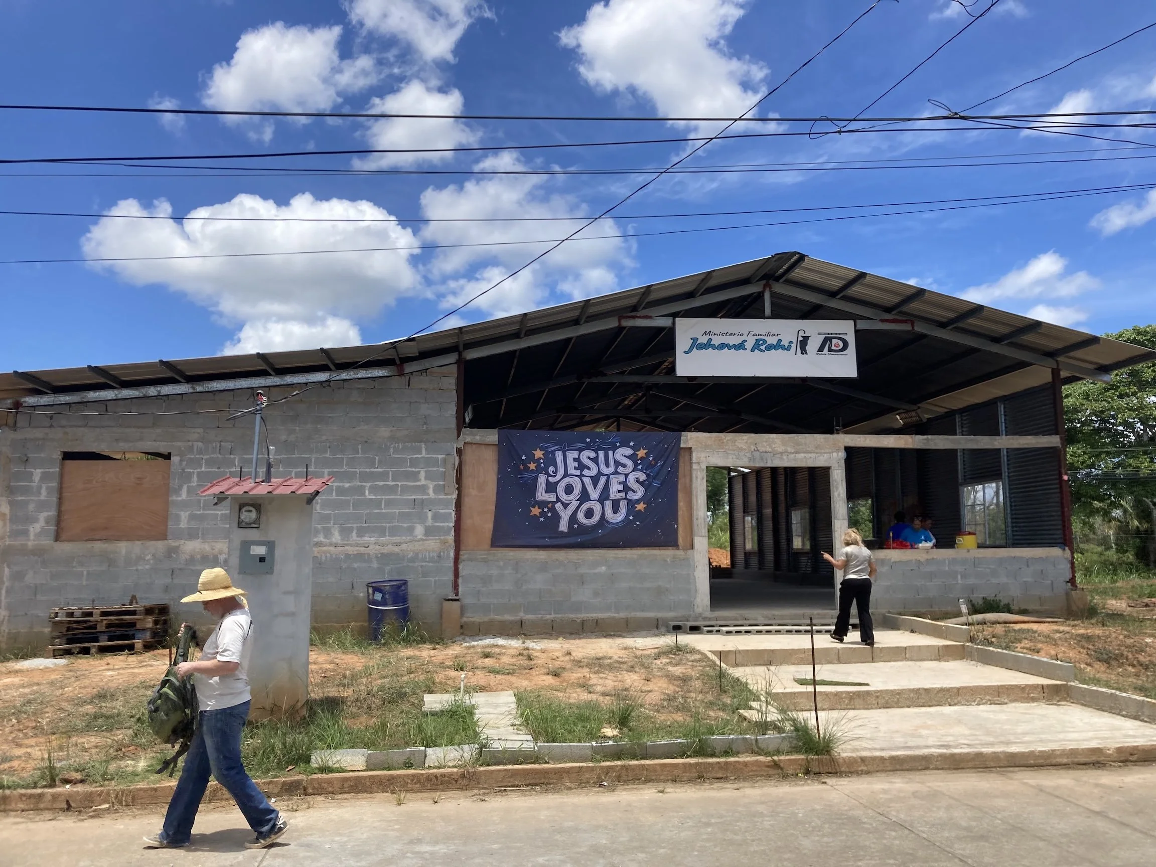 Our work on the church was done by Wednesday after four days of mixing concrete by hand and installing the roof.