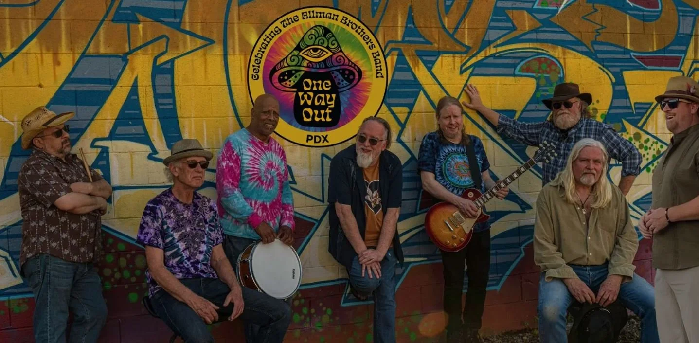 “One Way Out is a Portland-based 8-member band, committed solely to paying musical tribute to the Allman Brothers Band, including the solo and session efforts of Duane, Gregg, and Dickie. One Way Out stays true to the great studio and live performances of the Allman Brothers, capturing that high level of interplay and spirited improvisation that made them famous and arguably the greatest live band of their time.