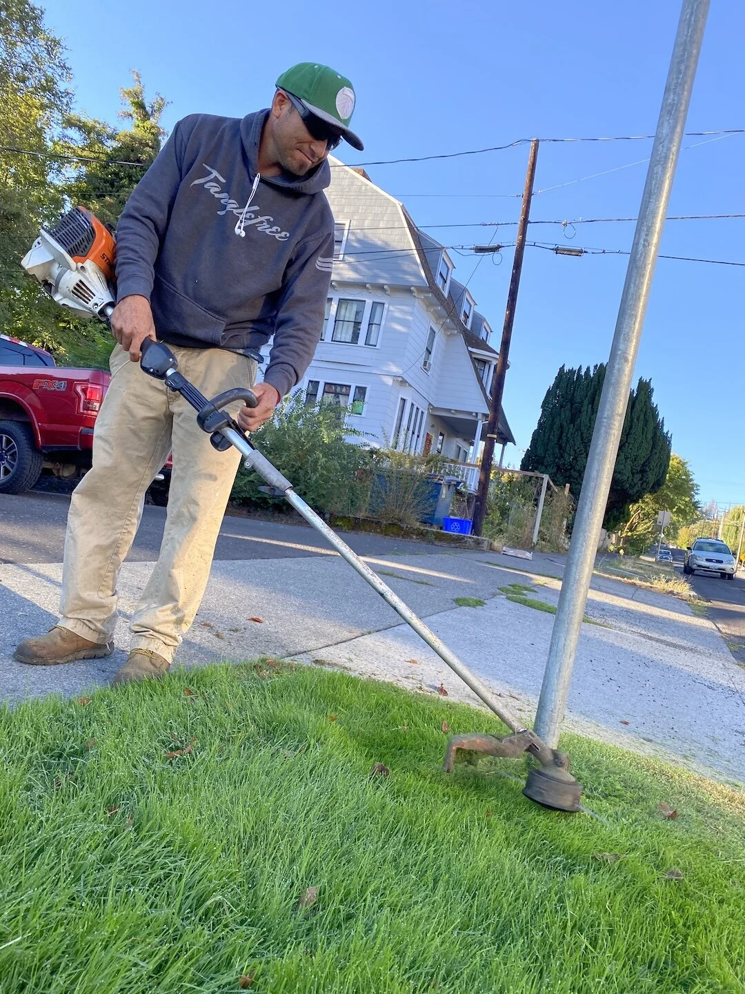 Saturday rain helped keep the neighborhood green over the weekend. Oscar Bustamante was getting after it this morning, Monday, Sept. 20. at the offices of Onstott Broehl & Cyphers CPAs at 100 Fourth Street, The Dalles.