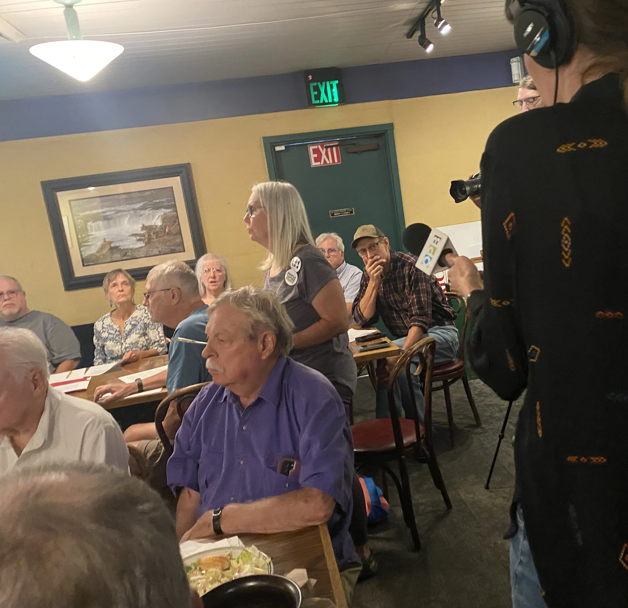 The Dalles, Ore., Aug. 20, 2025 — Debi Ferrer of The Dalles confronted Rep. Cliff Bentz on Wednesday over the loss of a $20 million federal grant for a child care and climate resiliency hub, comparing it to millions spent on Donald Trump’s golf trips.