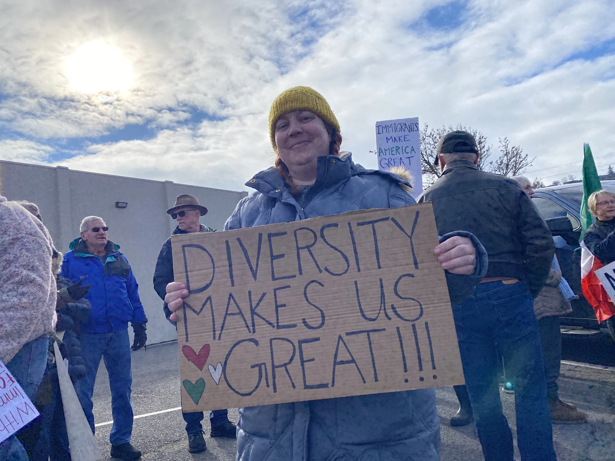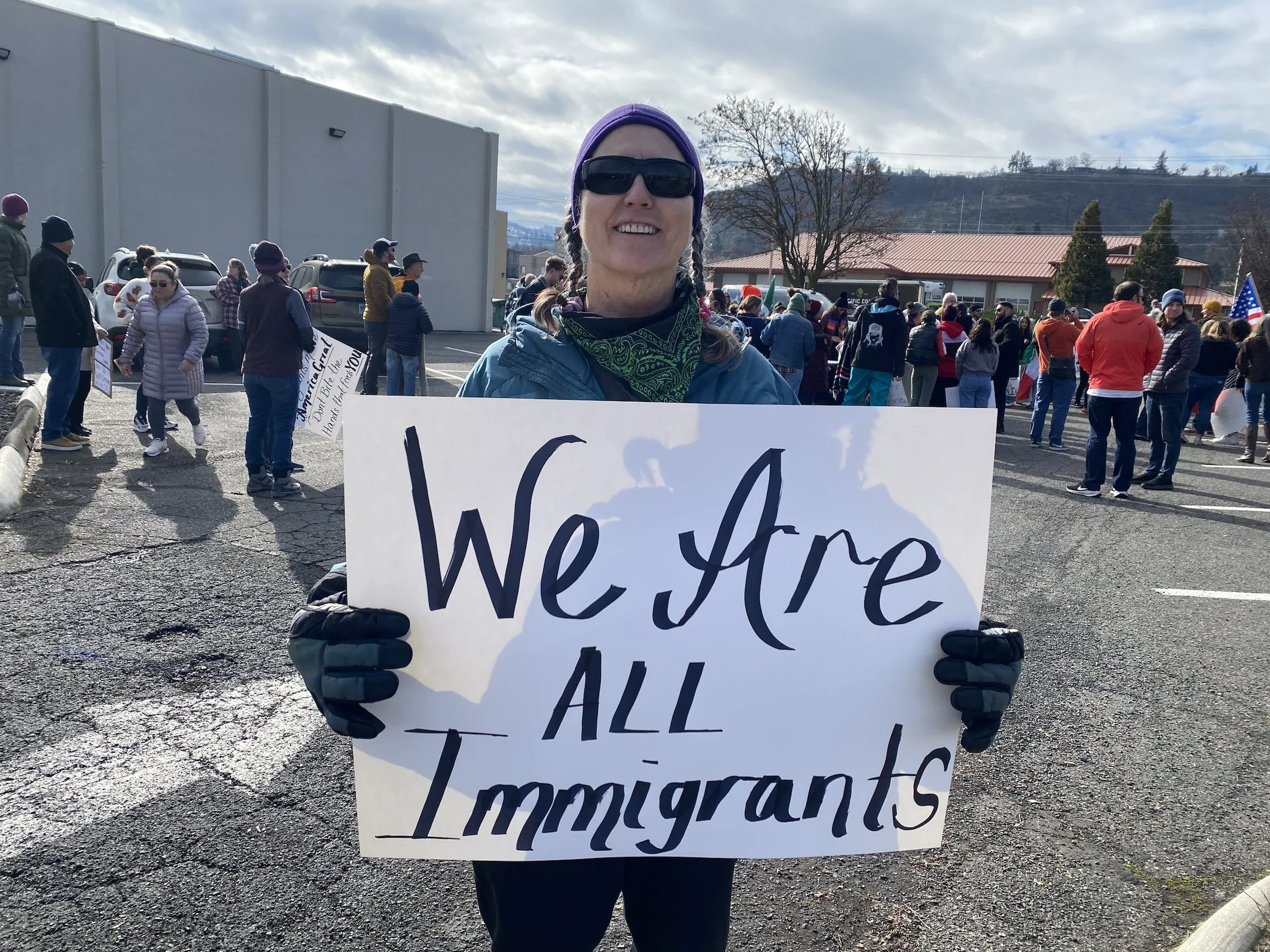 “I’m here to support our immigrants and neighbors and show that we stand for them,” Jaime Paiser, 44, The Dalles, said. “I remember the last time. ICE was in our community. I do not want to see that again in our community.”