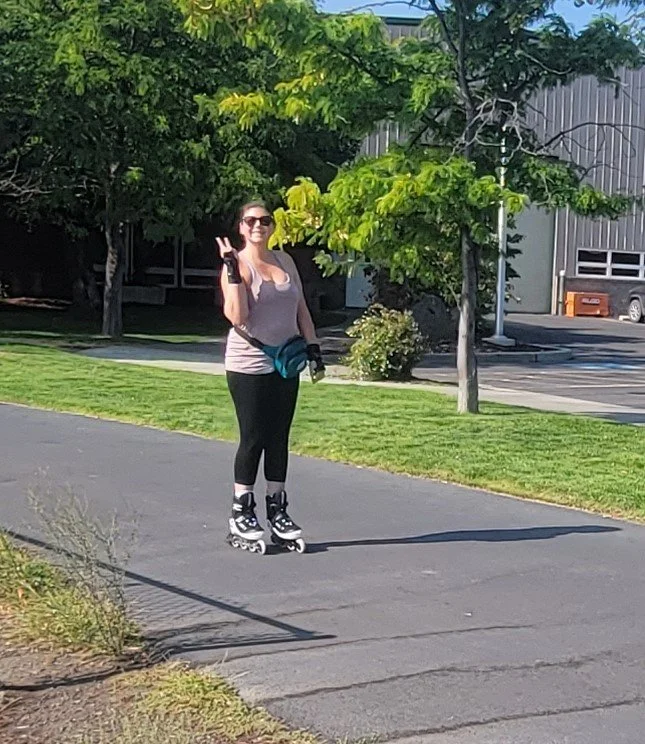 The Dalles, Or Aug 24, 2023-Waterfront Park experienced a burst of energy during late morning hours as Chelsea took to rollerblading, injecting a dynamic vibe into the serene environment. Amidst the warm sun and birdsong, Chelsea's lively presence stood out.