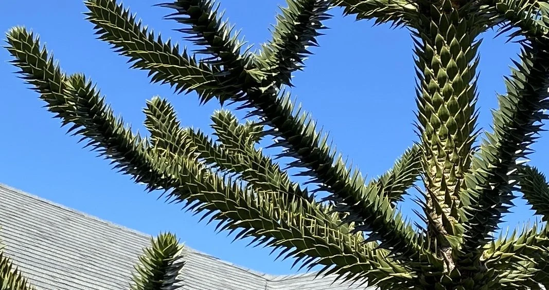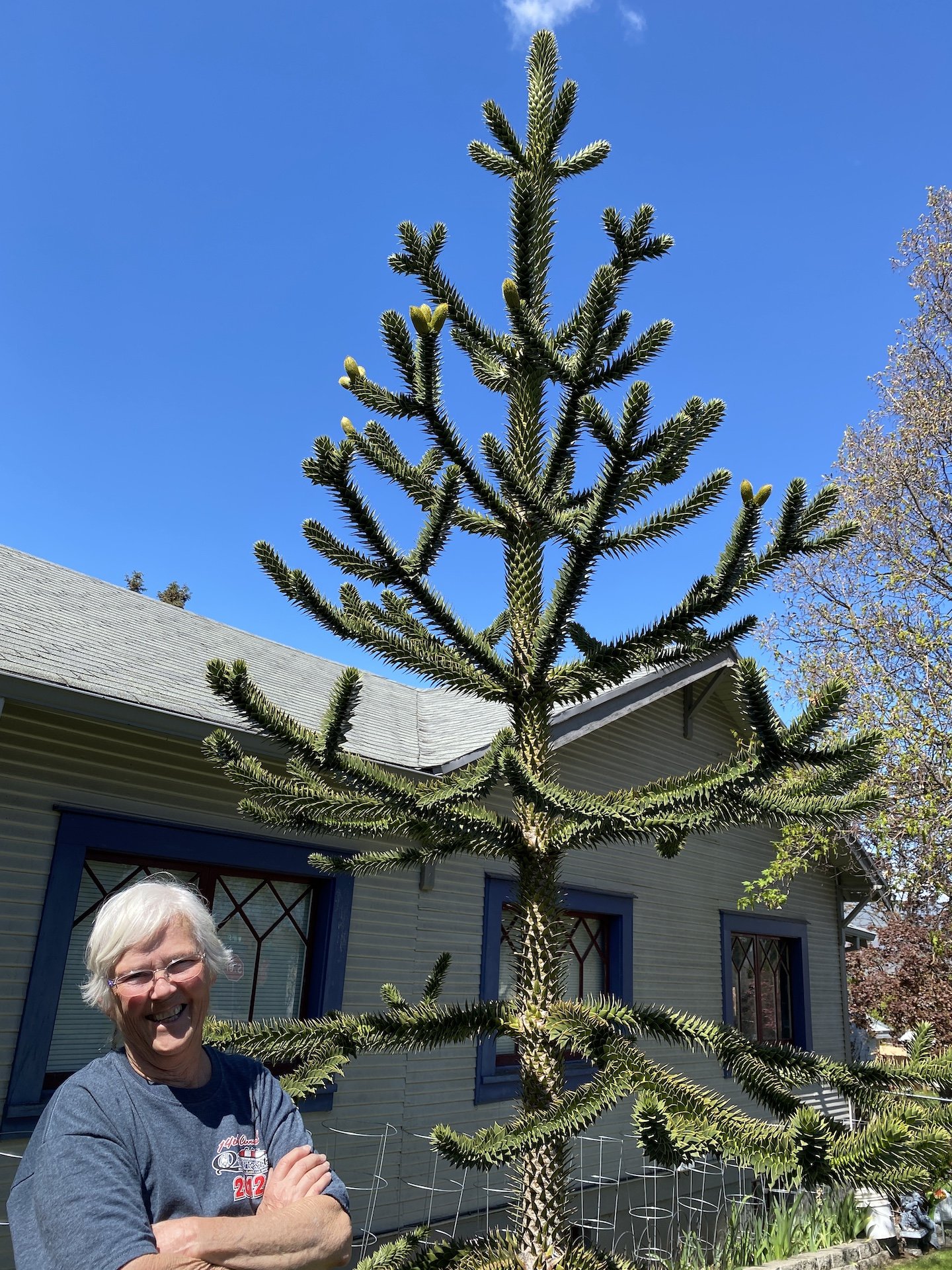 “My passion is gardening,” she said while taking a break from the mowing. She rested under her Monkey Puzzle tree. So unique! “I ordered it from a nursery,” she said. It is native to southern and central Chile, and, man, does it have cool branches - like a noble fir but spiked like a Sid Vicous.
