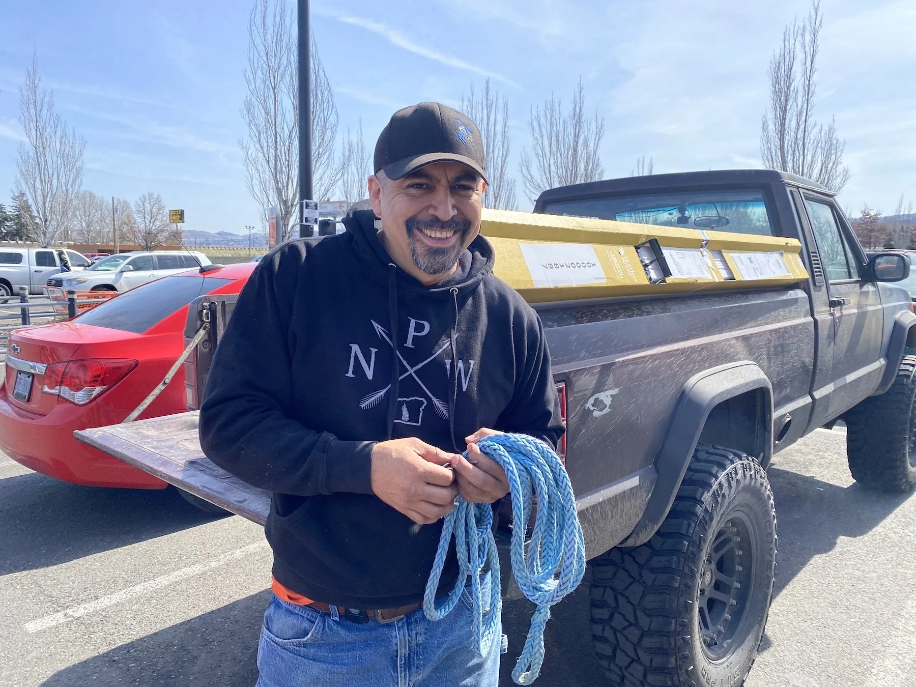 “Putting in an exterior door for my daughter,” he said, noting he had to return the one he had in the truck to get the right one to fit.”