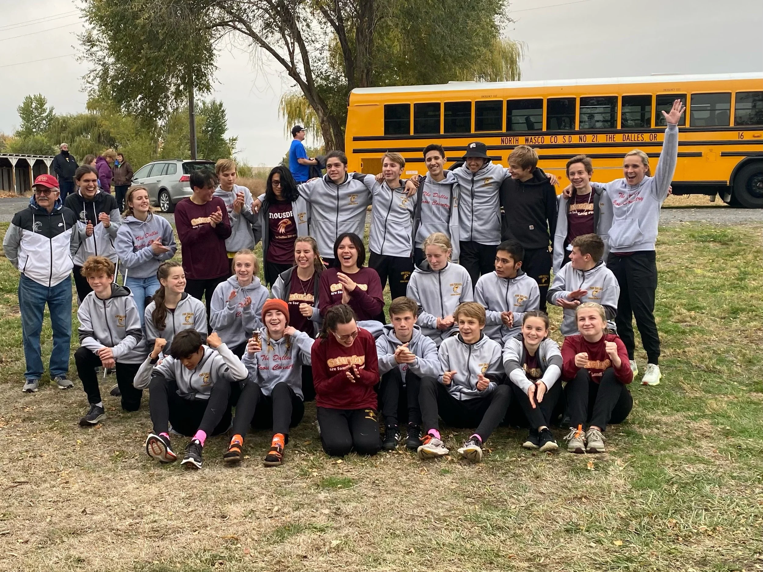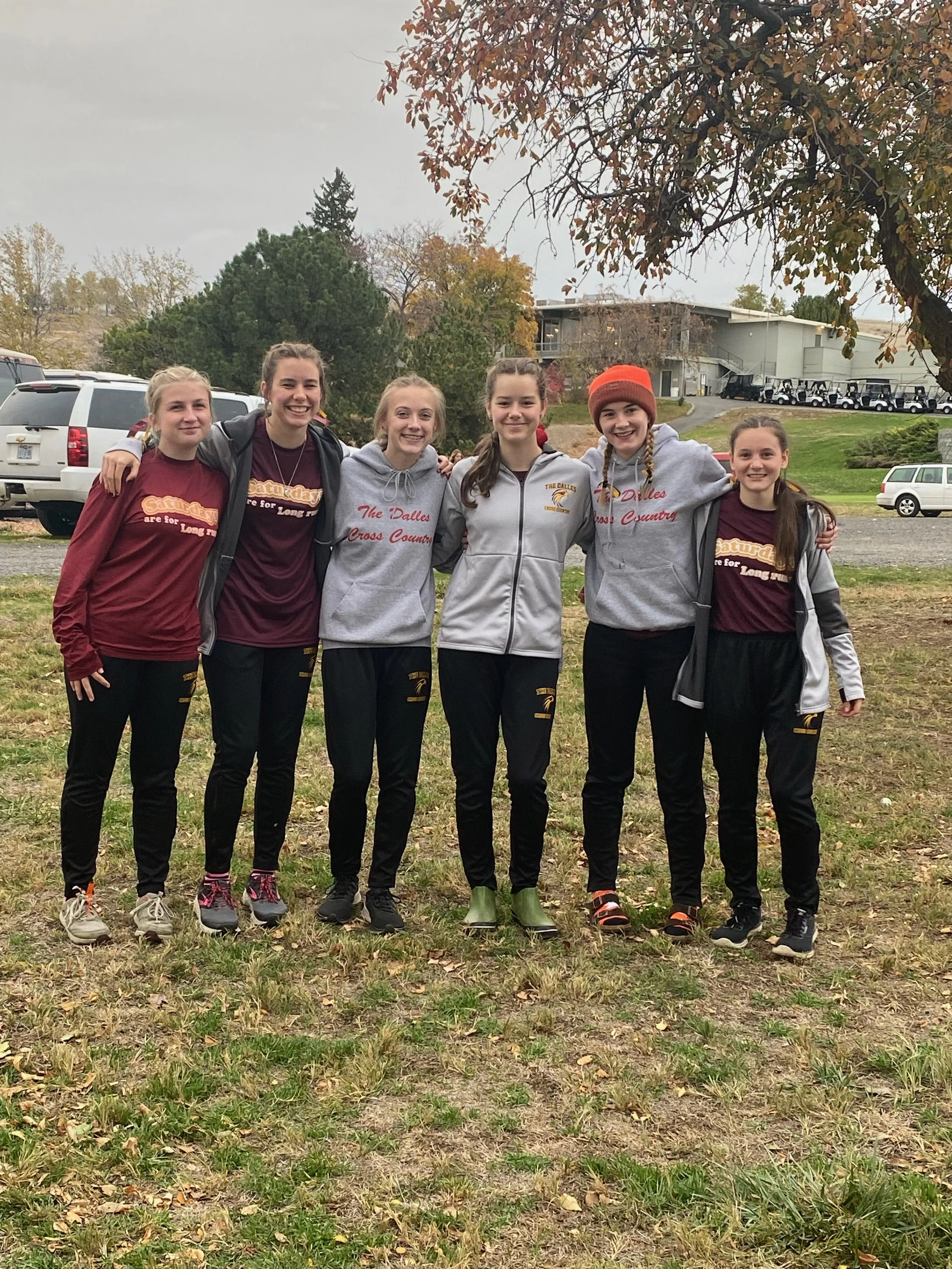 The girls’ contest, while less close, was no less fierce. Hood River’s competitive Phoebe Wood placed first at 20:08, leading the Eagles to a 28 point team finish. The Dalles, however, more than held their own against the rest of the Intermountain Conference, securing a 3rd place finish and sub-21 time for freshman Alaina Casady and 7th for senior and team captain Caitie Wring. Strong times for Fiona Dunlop, Gabrielle Kahler, and Lucy Booth helped the Riverhawks finish with 59 points total, still enough to win the six spots at the state meet. Few were more proud than Caitlin Frakes, whose 24:09 finish was a full minute and a half faster than her previous PR. “I never thought I could cry happy tears,” remarked Caitie. “But here I am!”