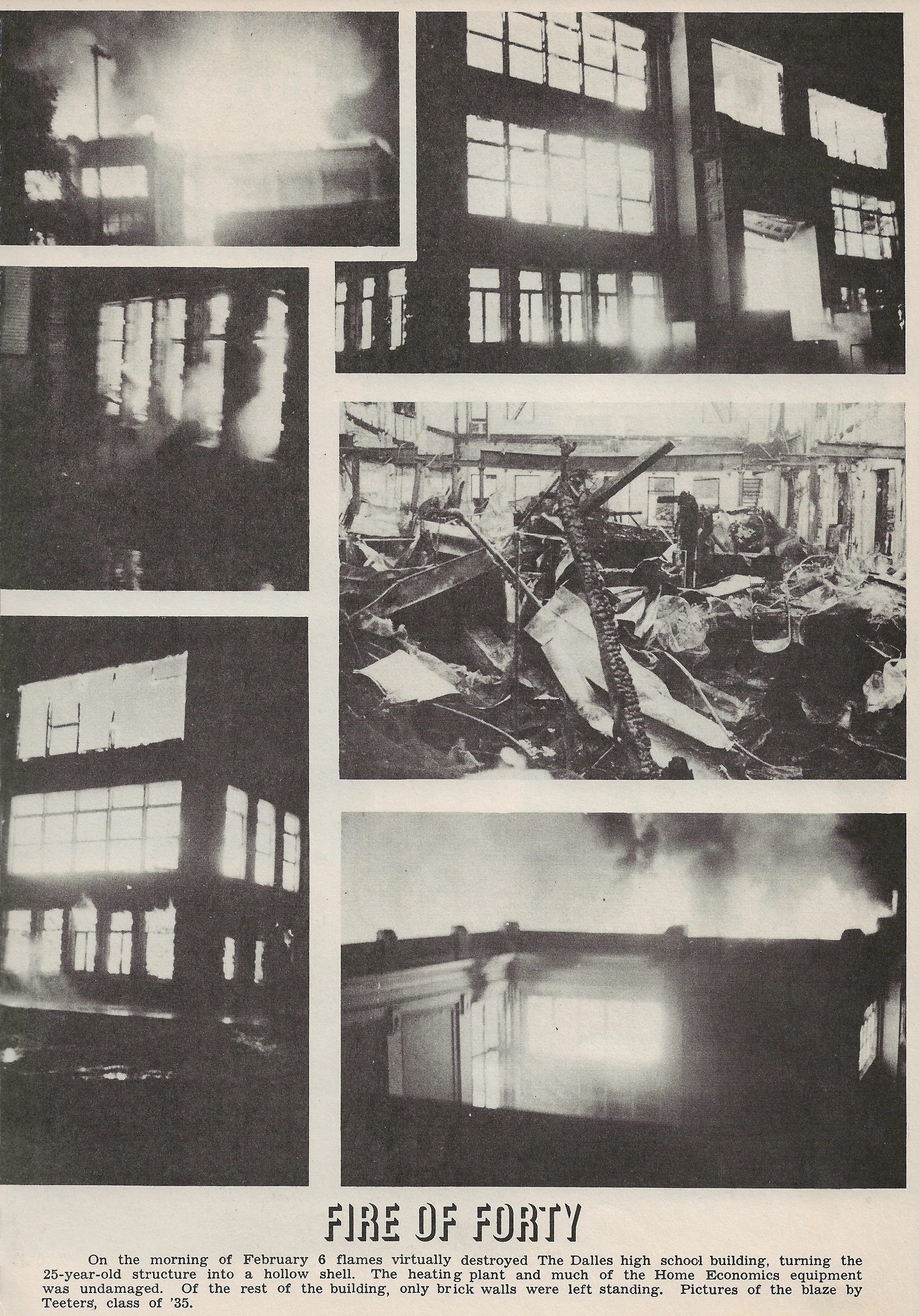 John Foley provided this scan, documenting the fire of the high school in 1940. Click on image to enlarge it.
