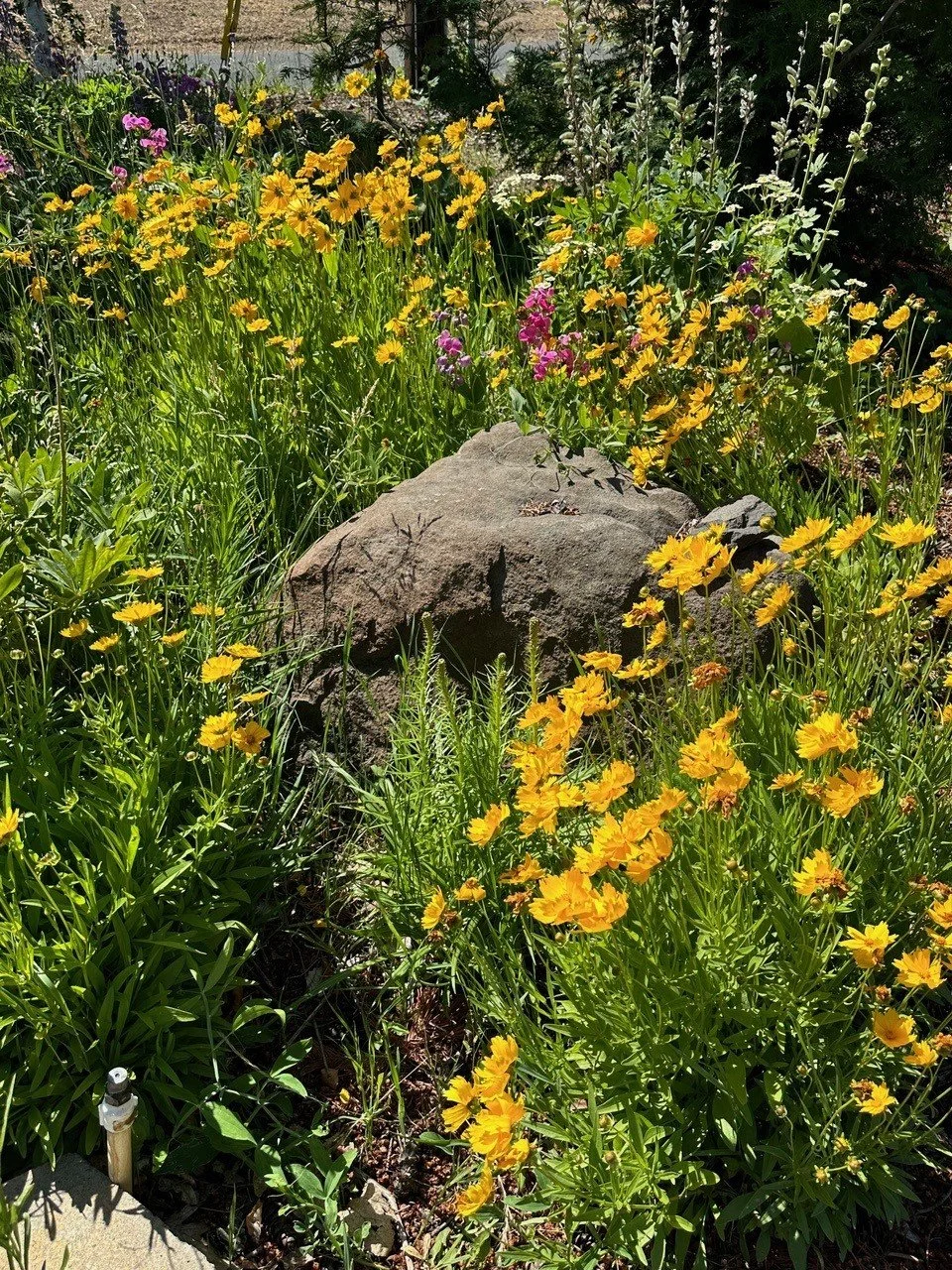 All of the Day Lilies in the garden were "rehomed" from a garden rehabilitation project at Chenowith Elementary School, emphasizing the project's commitment to sustainability.