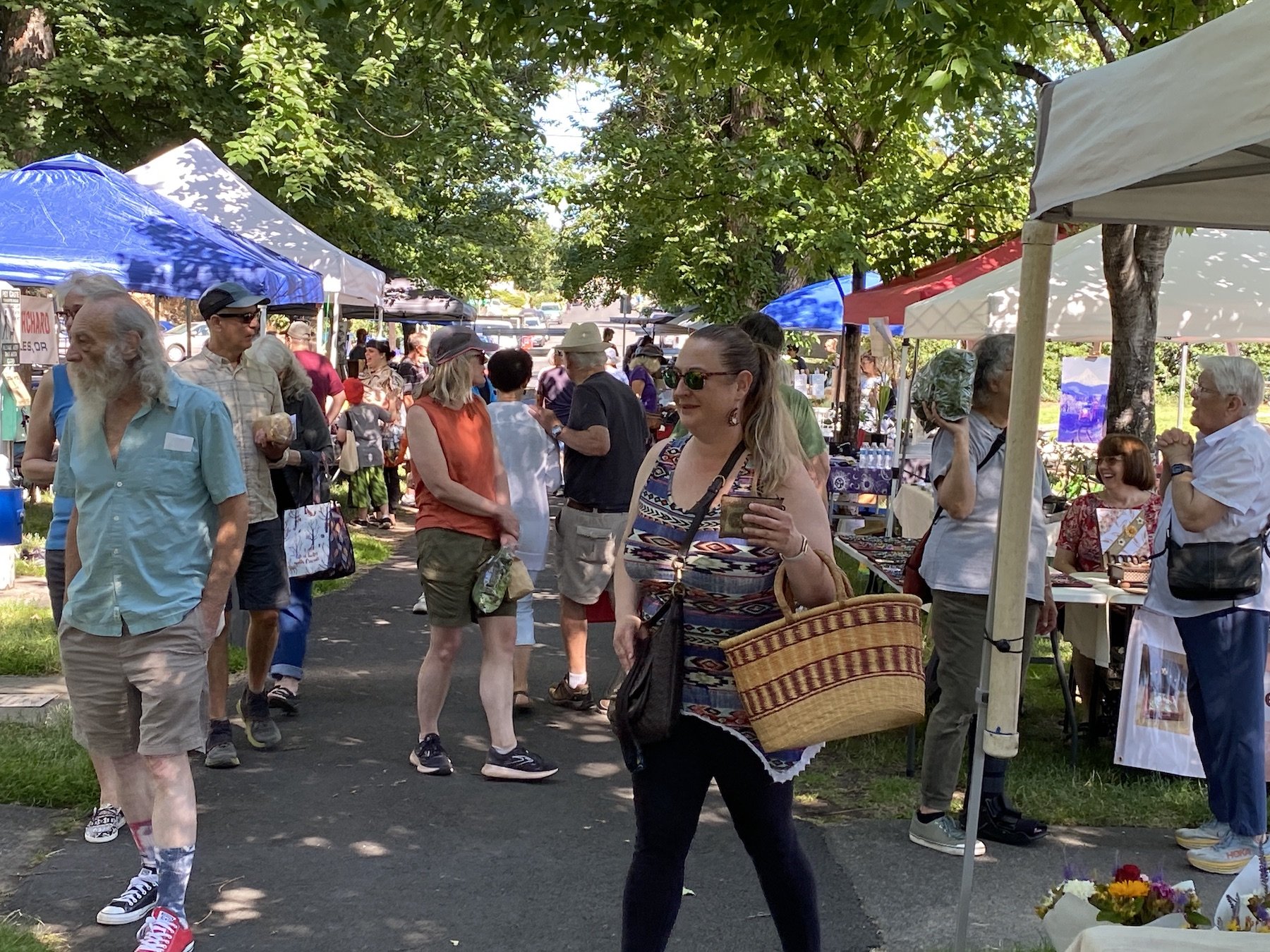Business was bustling at City Park in The Dalles this morning as the Farmers’ Market brought local shoppers in droves.