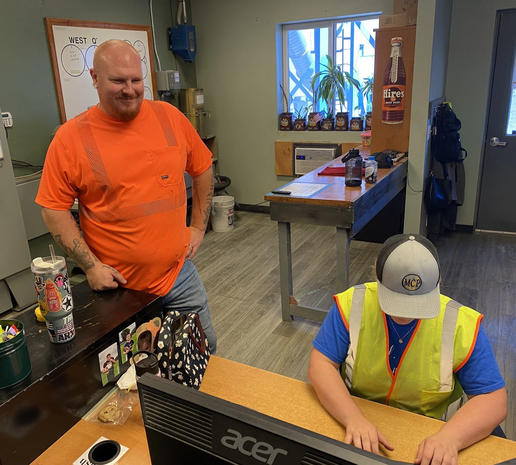 The Dalles Terminal Operator Cody Darnielle and Katherine Kramer work on entries as wheat trucks are weighed, dumped and and total pounds are documented.