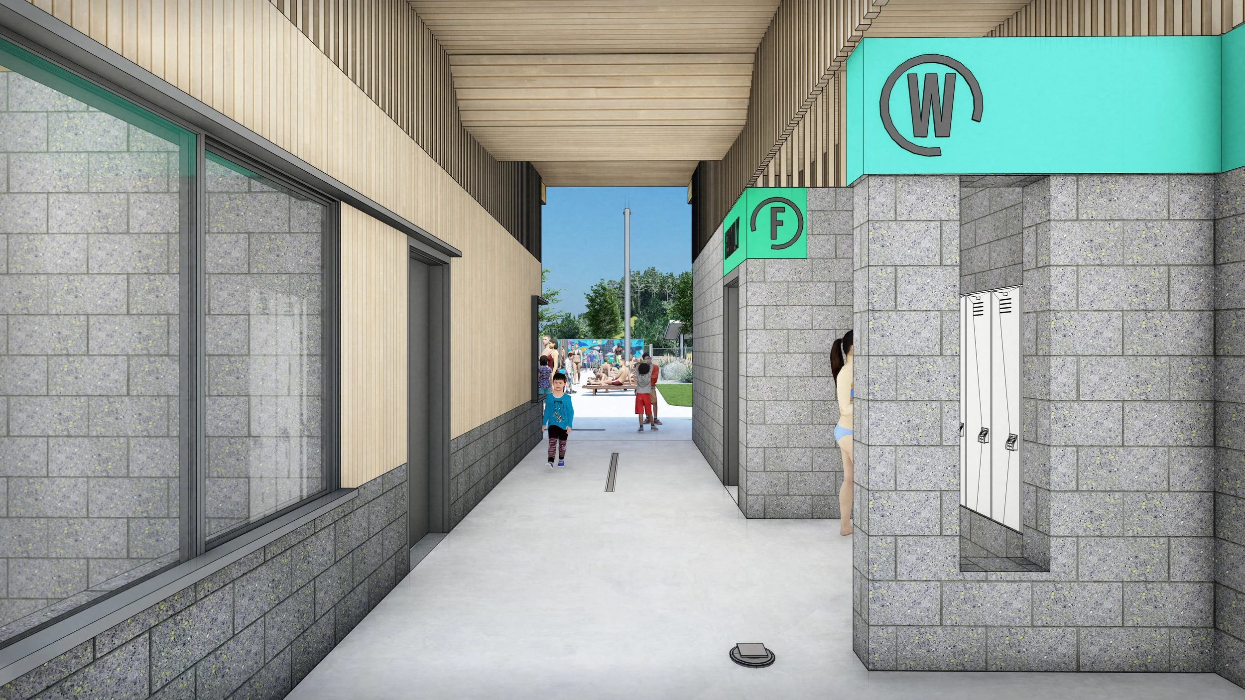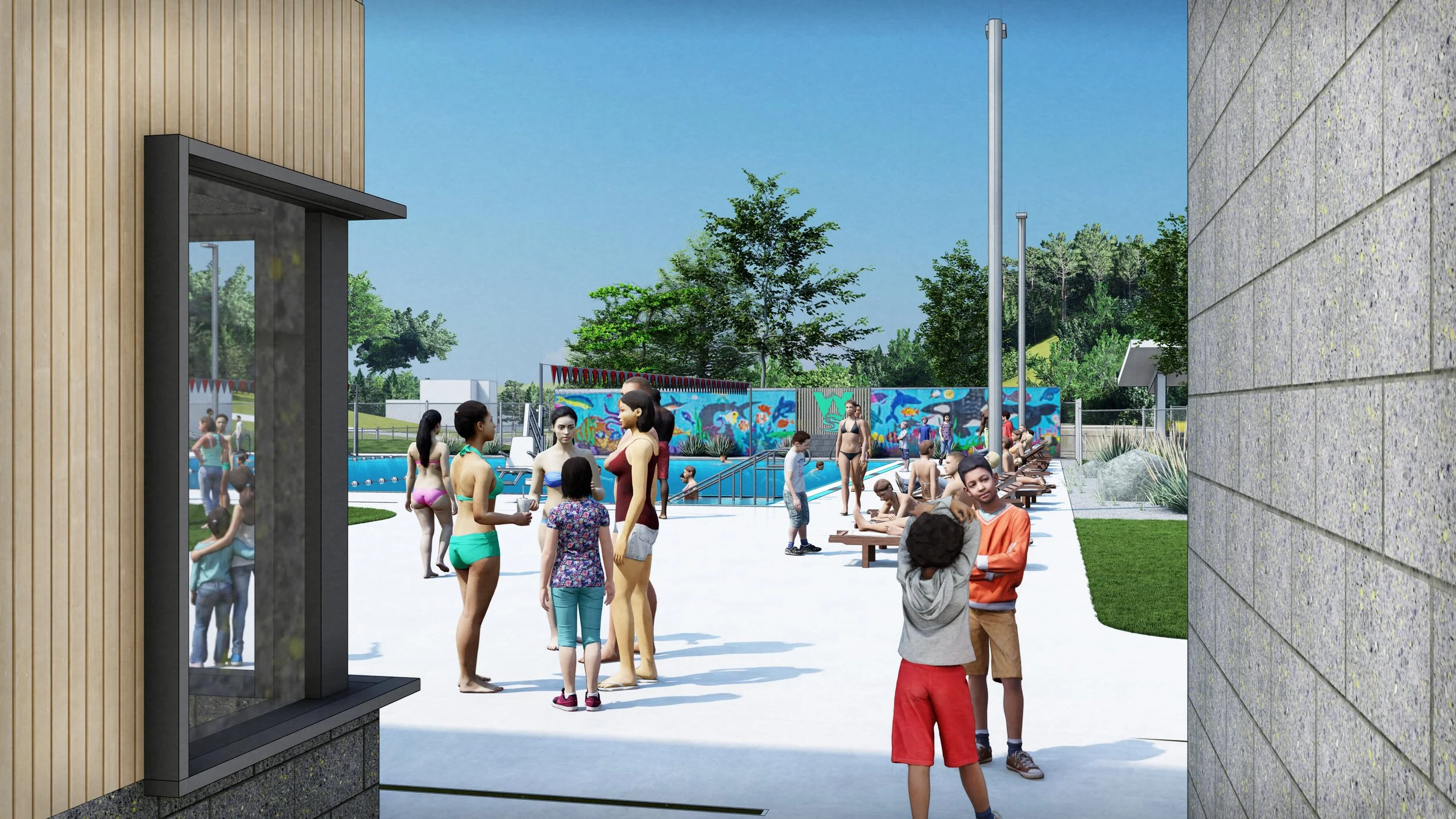 Architectural renderings of the White Salmon Public Swimming pool entrance