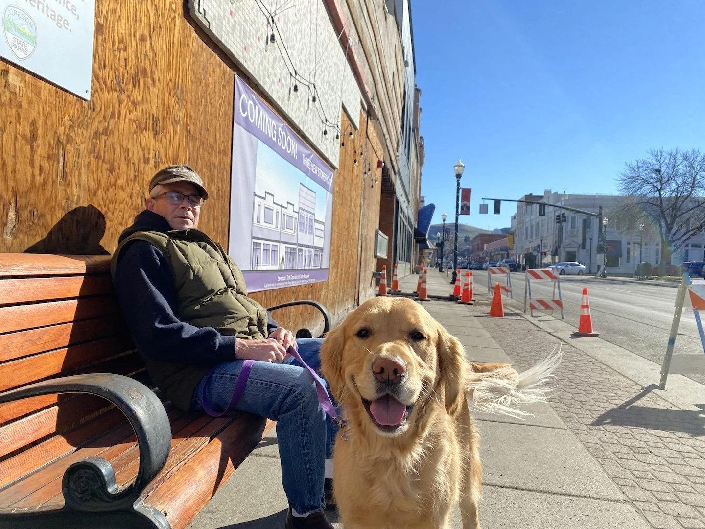 Larry Coyner, 62, of The Dalles took a nice break on the bench outside the Recreation Building in downtown The Dalles today, Wednesday, Feb. 16. He and his golden retriever Decoy were soaking up the sun as Sol is delivering us another solid. Warm temps in the high 50s and low 60s are expected through Sunday.