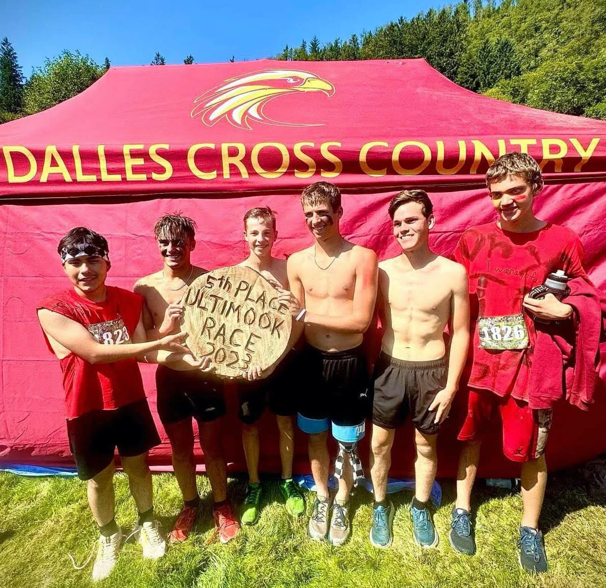 Emotions were running high as Bob Thouvenal calculated the scores while Caleb Caldwell and Tyson Long finished at 18:10. Wide-eyed and a little in disbelief, he turned to The Dalles parents huddled on the hillside near the finish line. “I think we won!”