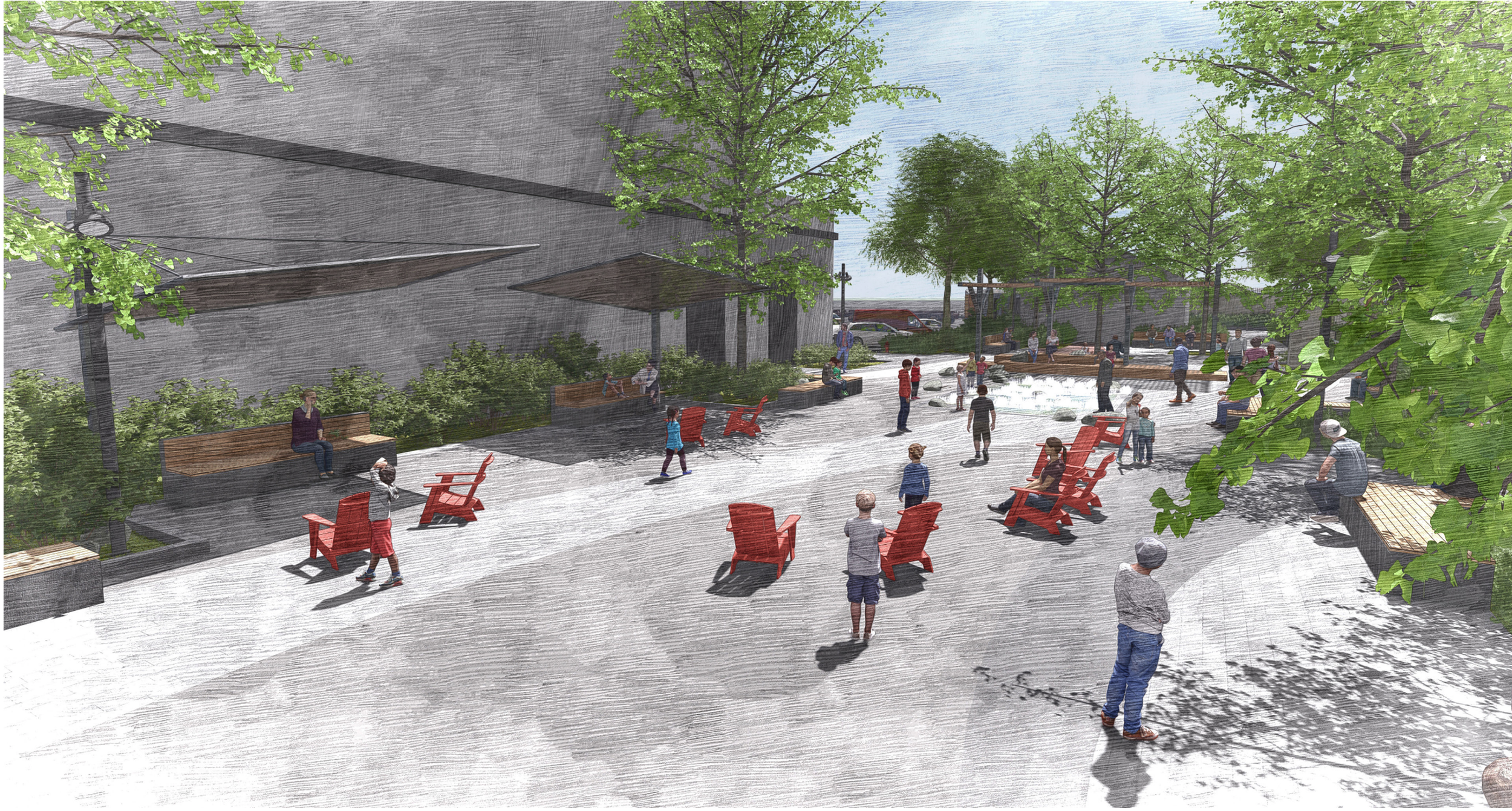Artist’s renderings of what the Plaza will look like when completed.