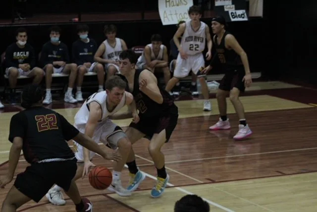 The Dalles boys basketball team won a thriller on Thursday, Feb. 3 against Gorge rivals Hood River Valley, in its third league game of the season. It was a hard-fought game for both teams with an electric crowd and the Hawks coming out on top 65-62 in the final seconds.