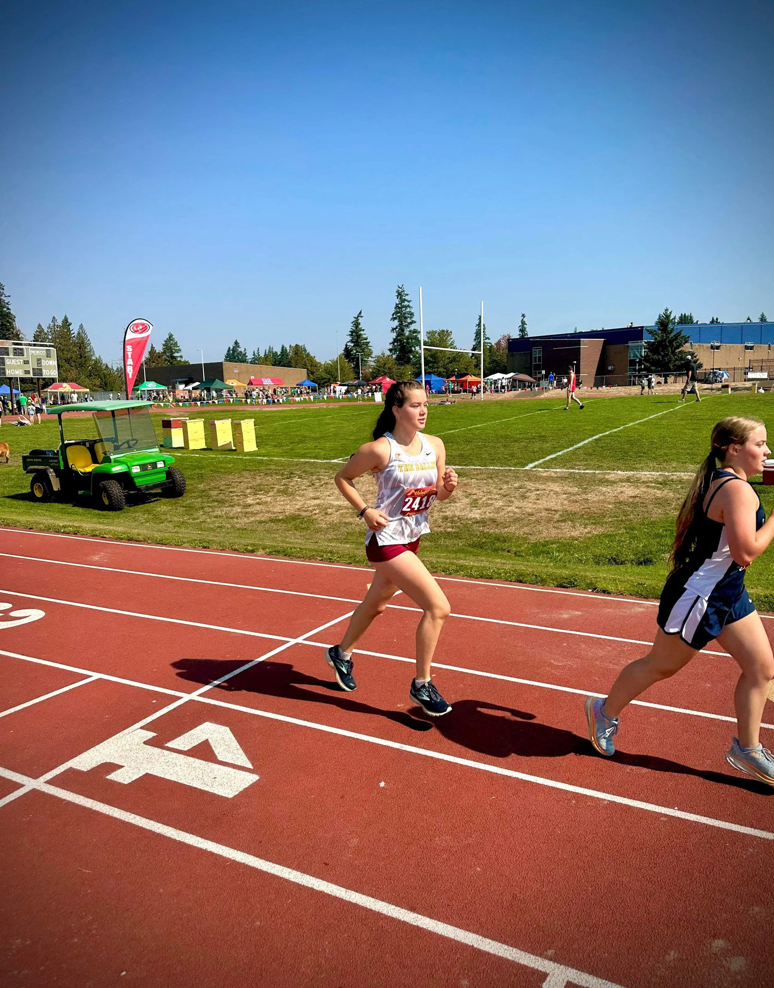 With no shade on the course and temperatures and humidity into the 90’s, the racing conditions favored the earlier JV races. Sophomores Aiden Erickson and Phoenix Nanie whittled their times down to 18:47 (4th) and 19:30 (a 20 second personal best, 16th), earning spots in the coveted eight man varsity for Oregon City, while Angel Garza-Ocampa got one step closer to the 20 minute barrier, finishing at 20:21. In the girls’ JV, Riley Elliot finished 16th, shaving her time down from just below 30 in Tillamook to 25:46.