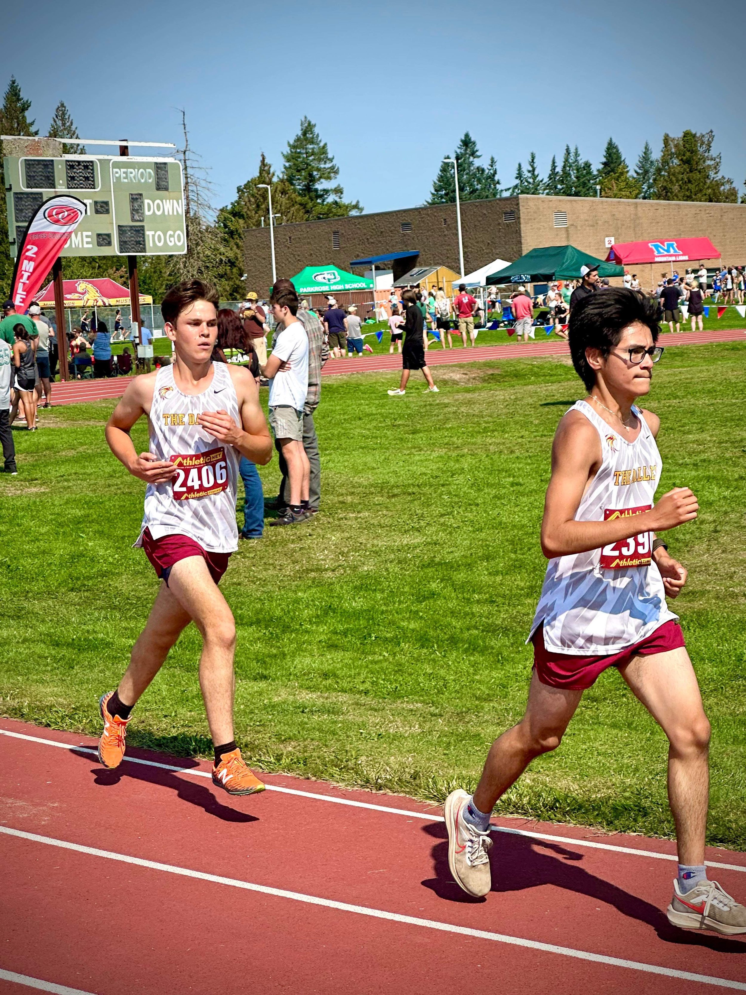 A difference in starting position made all the difference for Aiden Erickson. Normally in the back, the lean 6’3” sophomore toed the line for the varsity boys’ race, in the front quarter of the pack for the entire race. That lead translated into a 26-second PR from last year, with Erickson finishing sub 18 at 17:56. Ahead of Erickson was Tyson Long, right above the 17-minute barrier at 17:07 for 27th place. The improvement by 20 seconds over his district time from last year seemed to galvanize Long, already thinking ahead to the next meets.
