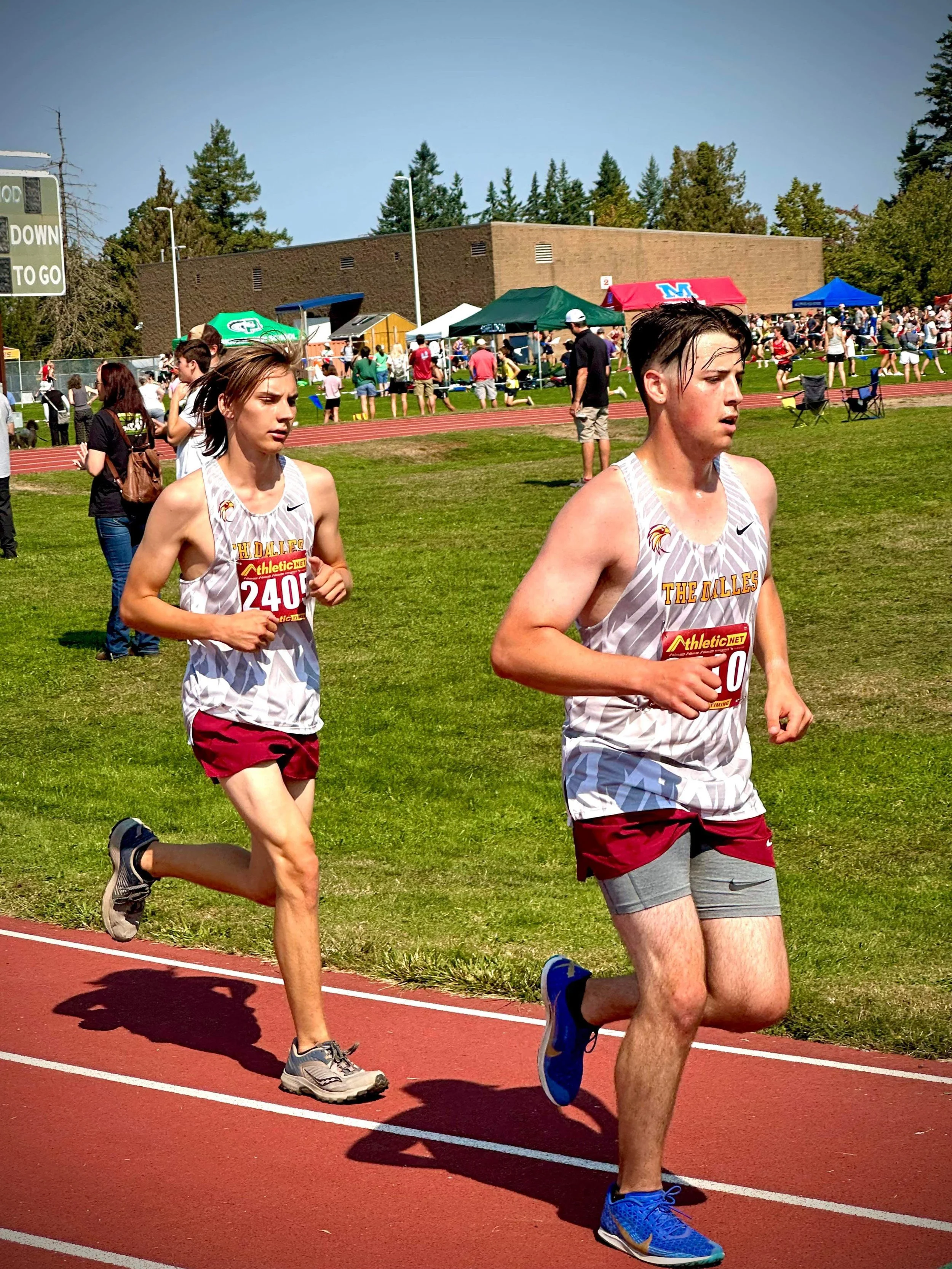 The Dalles boys managed a near repeat of last year’s “10 under 19”, with Egan Ziegenhagen (18:09), Gabriel Castillo-Quintana (18:16), Caleb Caldwell (18:34), and Noah Preston (18:56), with four more just at or right above 19: Josef Lutz (19:00), Zeb Stelzer (01), Angel Garza (04.1), and Sawyer Dray (04.5). The freshman squad also broke the 20-minute barrier for the first time, with Rhett Loughmiller, Jack Dewey, and Maverick Varland logging times in the 19:40s and 50s.