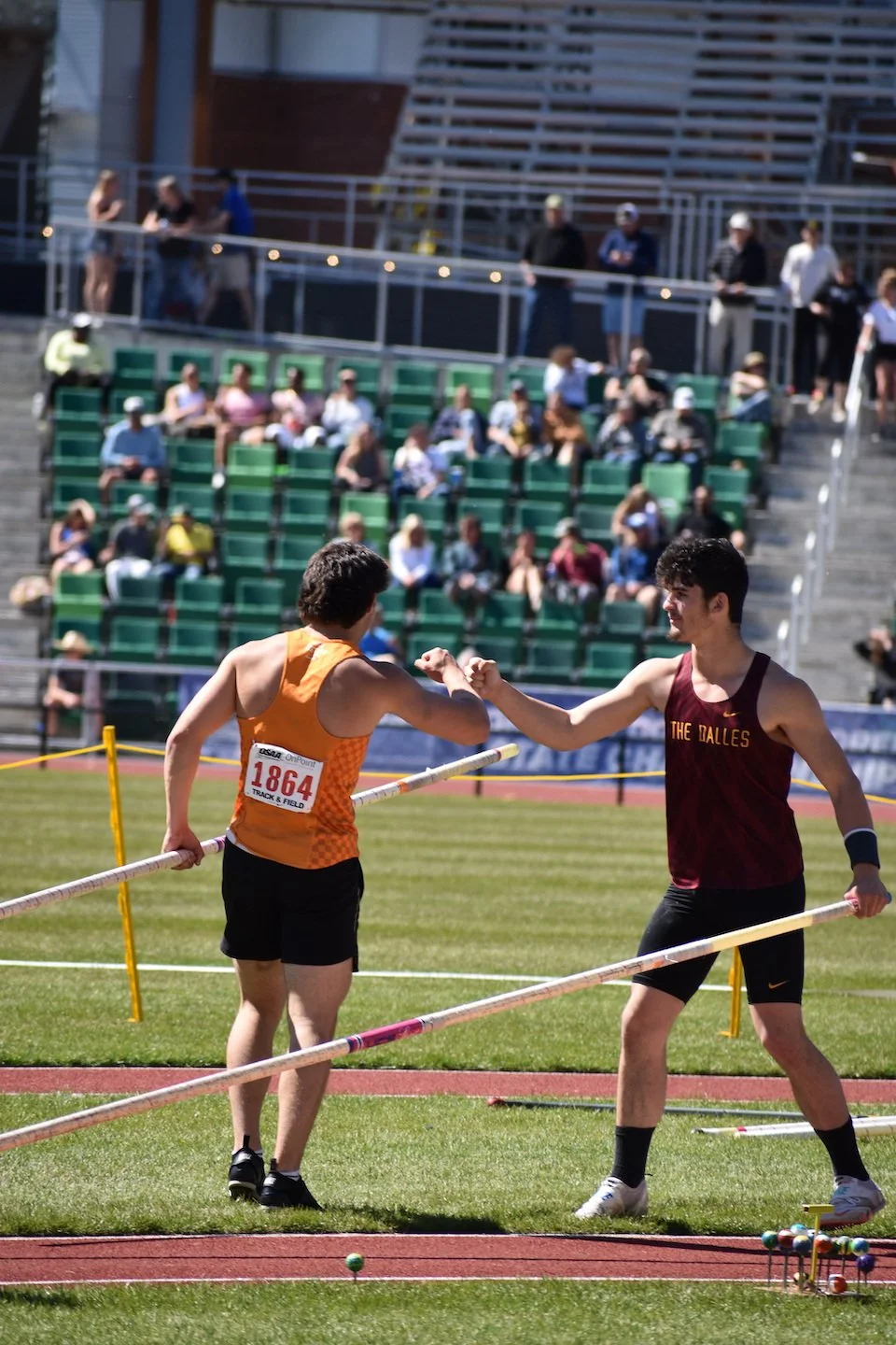 With the entire stadium clapping, he barely missed his attempts at 15’9”, which would’ve broken The Dalles’ record. Still, he was pleased with his season- with an improvement of over a foot during the past few weeks; there are few that work harder- or stay longer at practice- than Morehouse, a legacy that current coach/former vaulter Garth Miller is proud of as well.