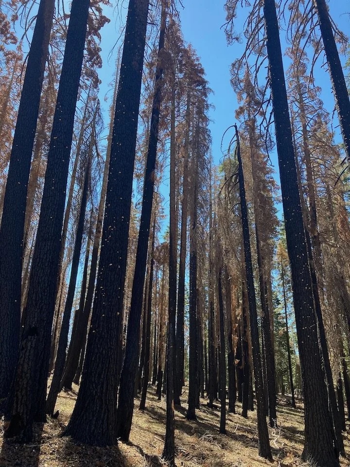 Peterson said they are periodically hiking in burns from past fires as smoke from the current 18,000-acre Oak Fire near Yosemite National Park has brought in some haze and smoke on some days.