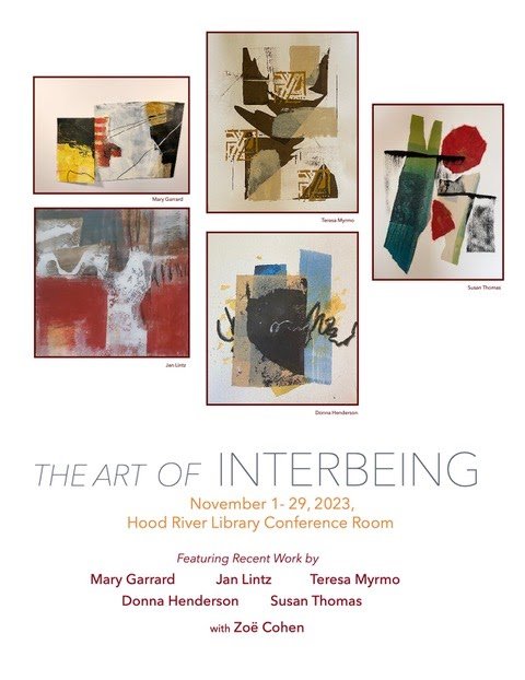 “The Art of Interbeing,” a group exhibition of recent work by five Oregon abstract artists, will be on display from November 1-29 in the Hood River Library Conference Room.