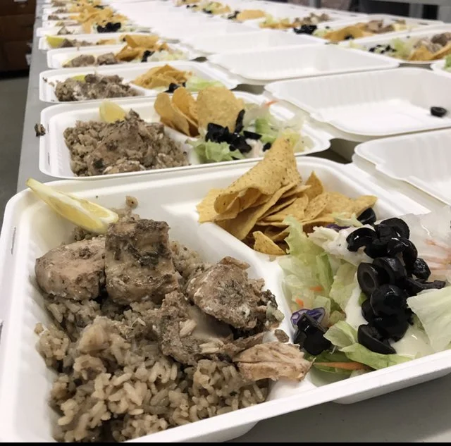 “But in COVID times, we can't do that. So, we serve the food in to-go boxes, and people come and pick it up. Some people also come in to use the bathroom, showers, pour a cup of coffee, or water. But because of COVID restrictions, there is not the same level of commingling happening, and folks have to eat outside right now.”