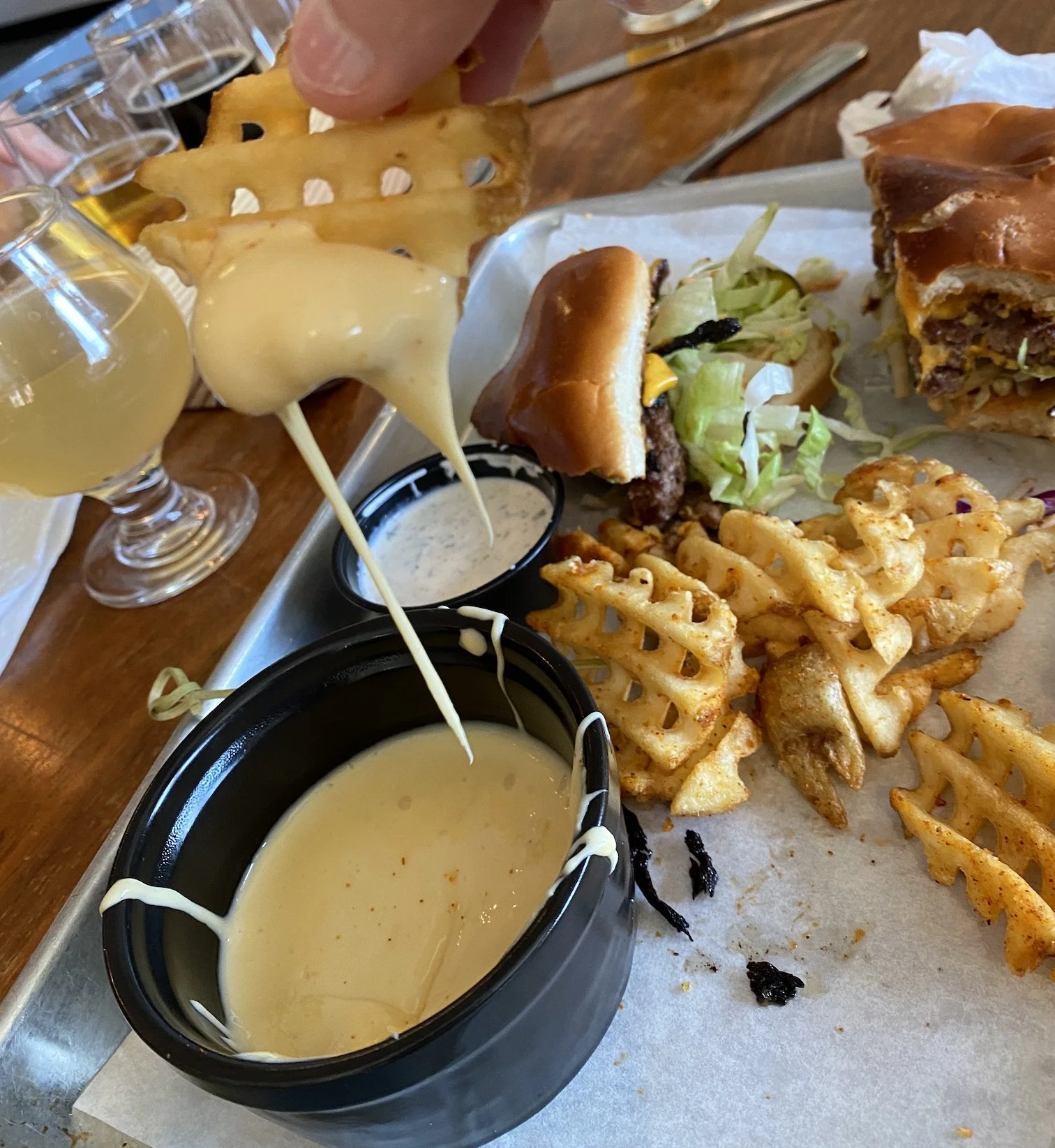 All of it was mired in waffle fries, and we opted for the beer-cheese sauce, because who can freeze with beer and hot cheese?