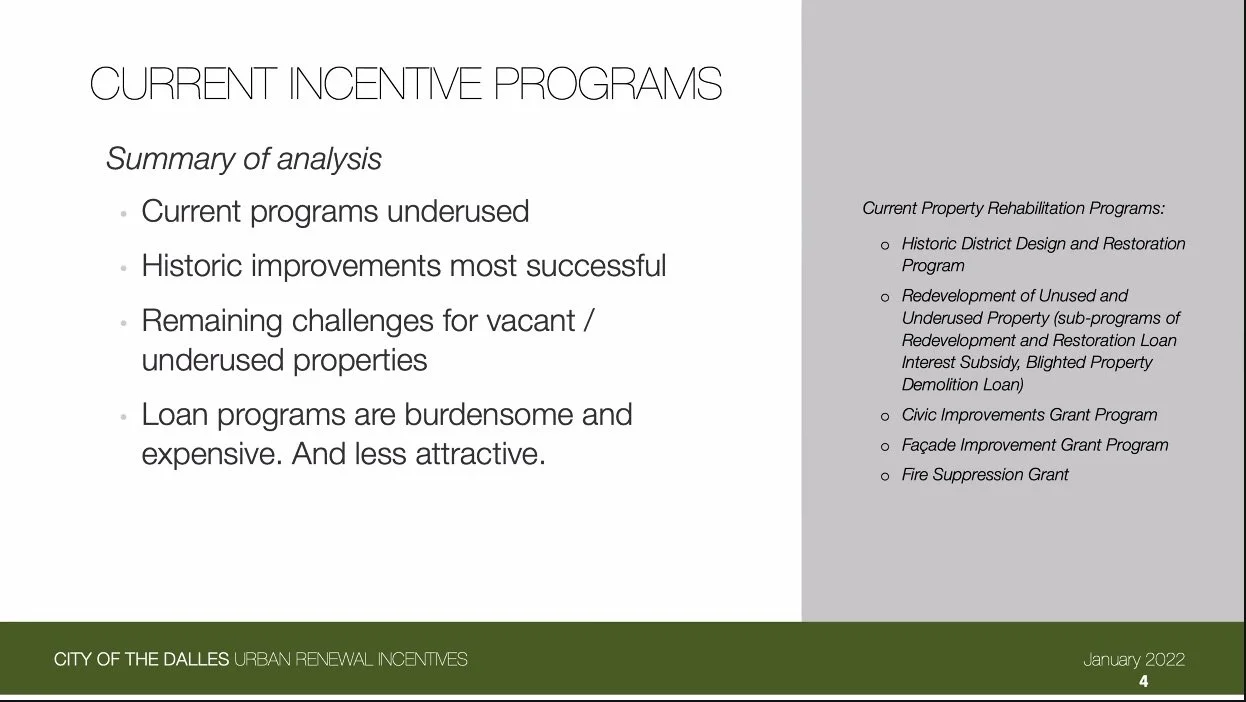 Urban Renewal incentive plans are generally going underutilized, according to a presentation given to the Board on Tuesday, Jan 18.