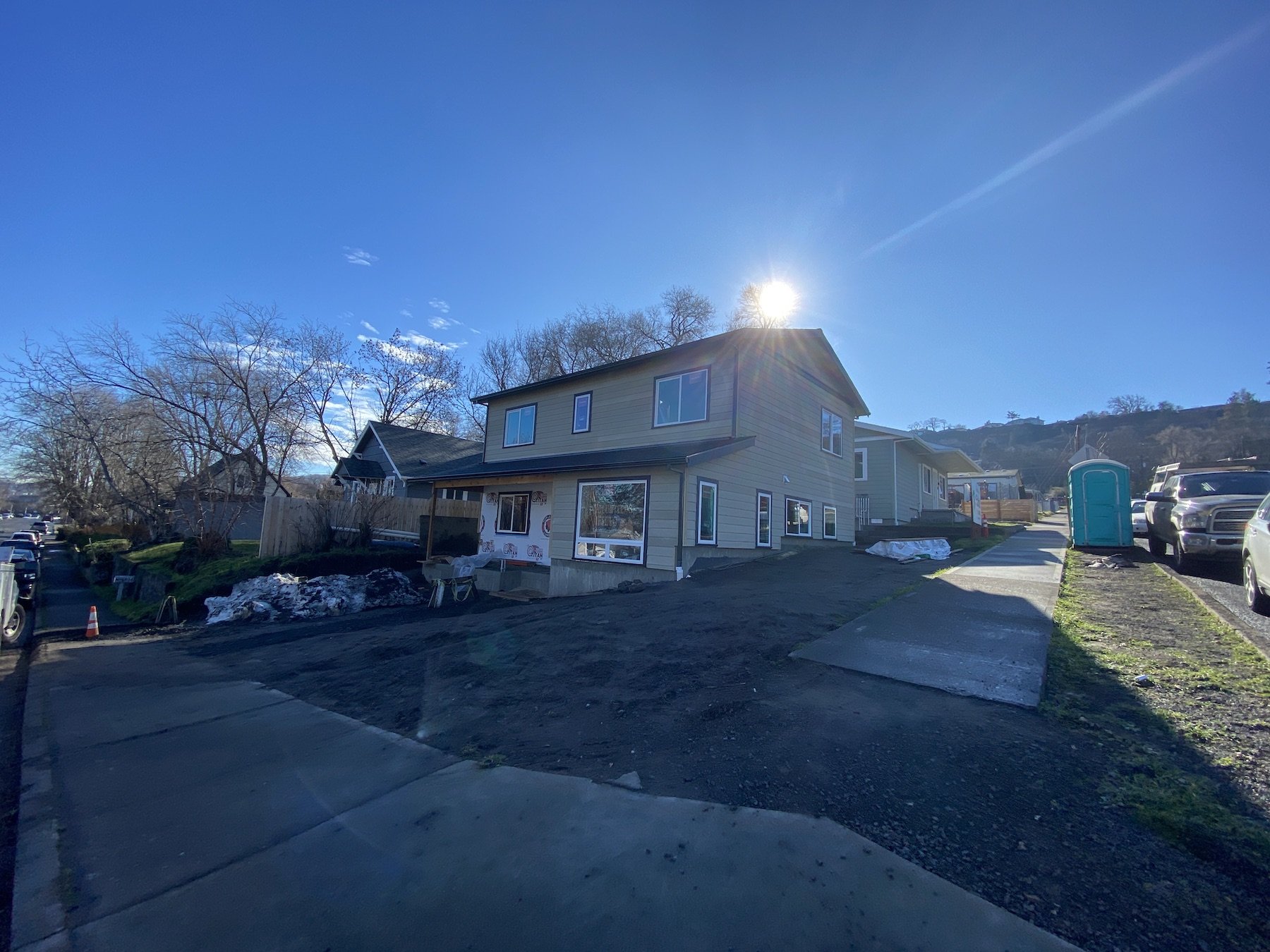 Home Springs Eternal this morning, Feb. 7, as the sun flies over the top of the roof of a new Columbia Gorge Habitat for Humanity home on the corner of Kelly Avenue and 13th Street in The Dalles. Habitat is looking to keep pace with their one-new-home-a -year goal as this latest build is nudging closer to the finish line as subcontractors are now working on the electrical. Sheetrock and finish work and a ton of other details have yet to be sorted. However, one detail, likely the most important, is that a family from Lyle that will eventually own the home is already putting in the sweat equity.