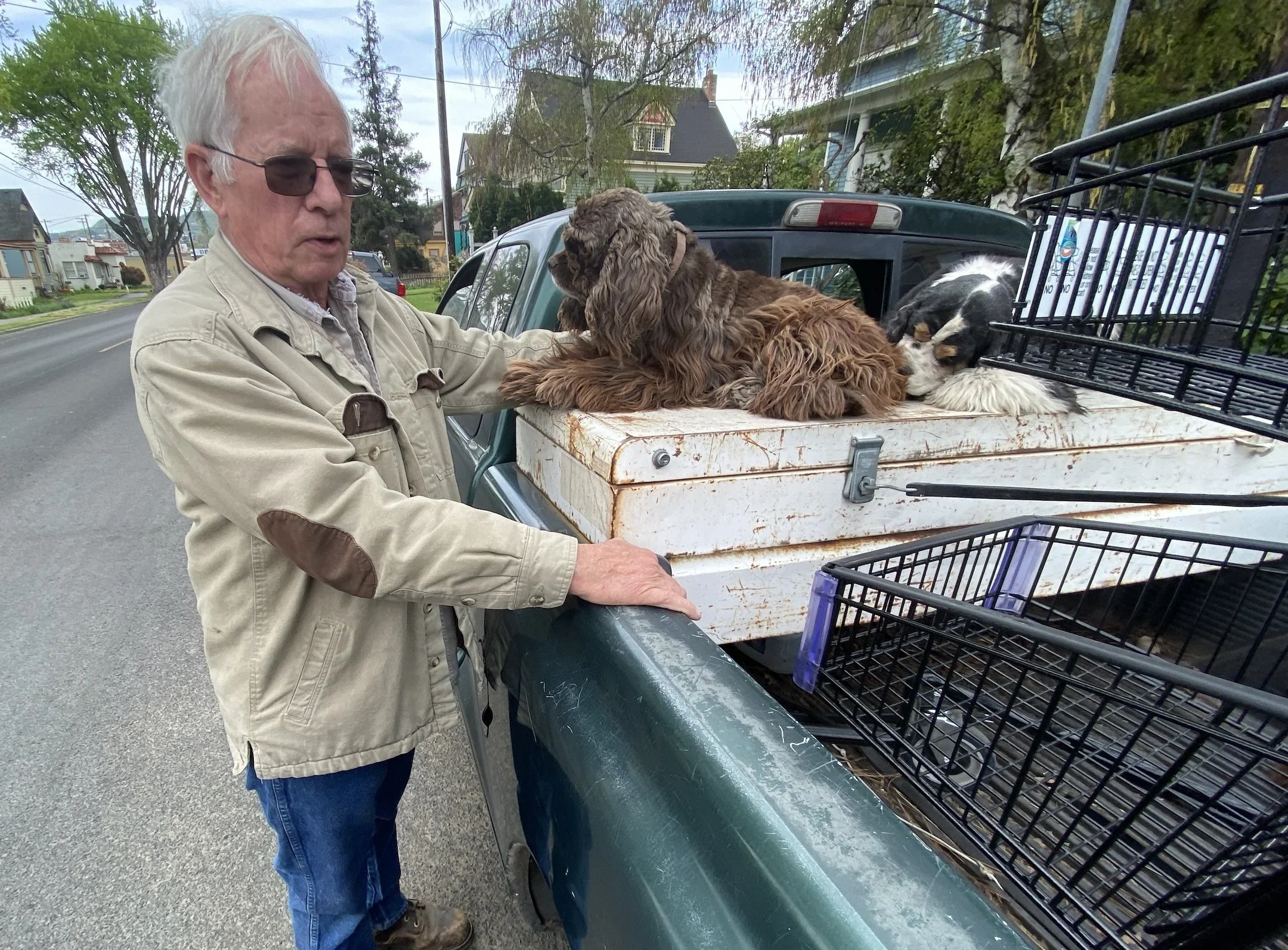File Photo - Donny Lewis with his dogs in April 2024 while collecting shopping carts on West Fourth Street.