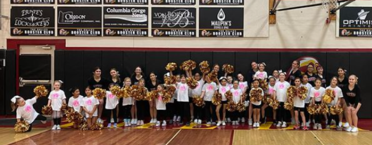 The Dalles High School Cheer puts a lot of effort into supporting other sports and the community while remaining competition-ready. On January 25th, TDHS Cheer had its annual Kids Cheer Clinic.