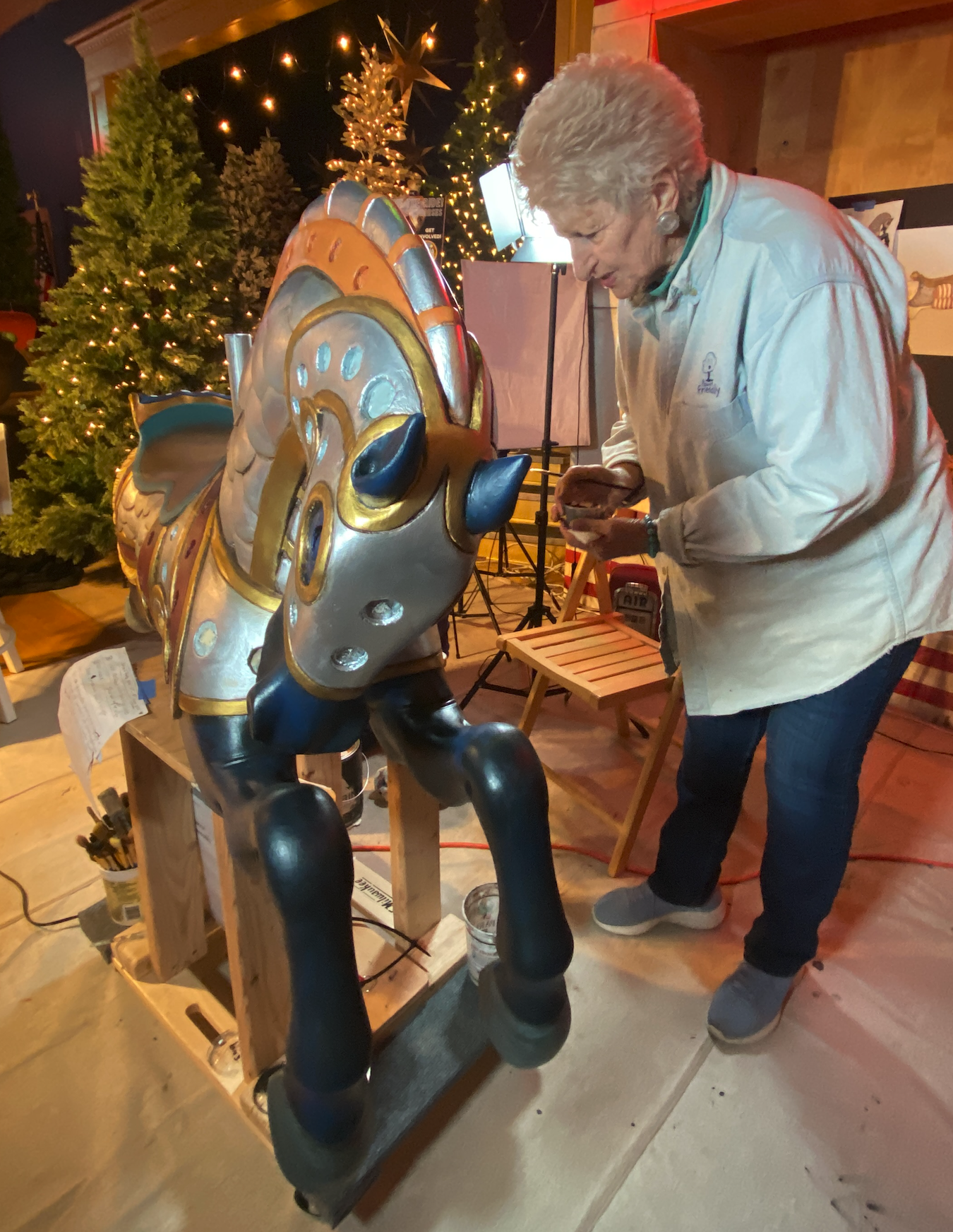 Local artist Denae Manion has spearheaded much of the hands-on restoration, helping organize volunteer efforts and guide painting and surface-finishing techniques. According to the Benkos, Manion’s experience and steady leadership have been central to maintaining consistency and quality across the restoration process as work continues on multiple horses.