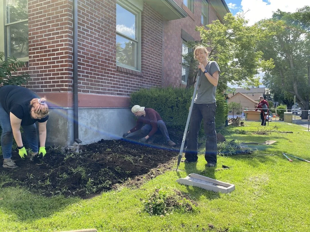 Members of First Christian Church showed up at 8 a.m. to help us remove shrubs, plant flowers, weed beds and trim hedges. The group regularly finds local projects to help improve the community, and on Saturday, June 5, they landed here at the former Tenneson building at 409 Lincoln Street. The building is our new home for local news and is in need of some TLC.