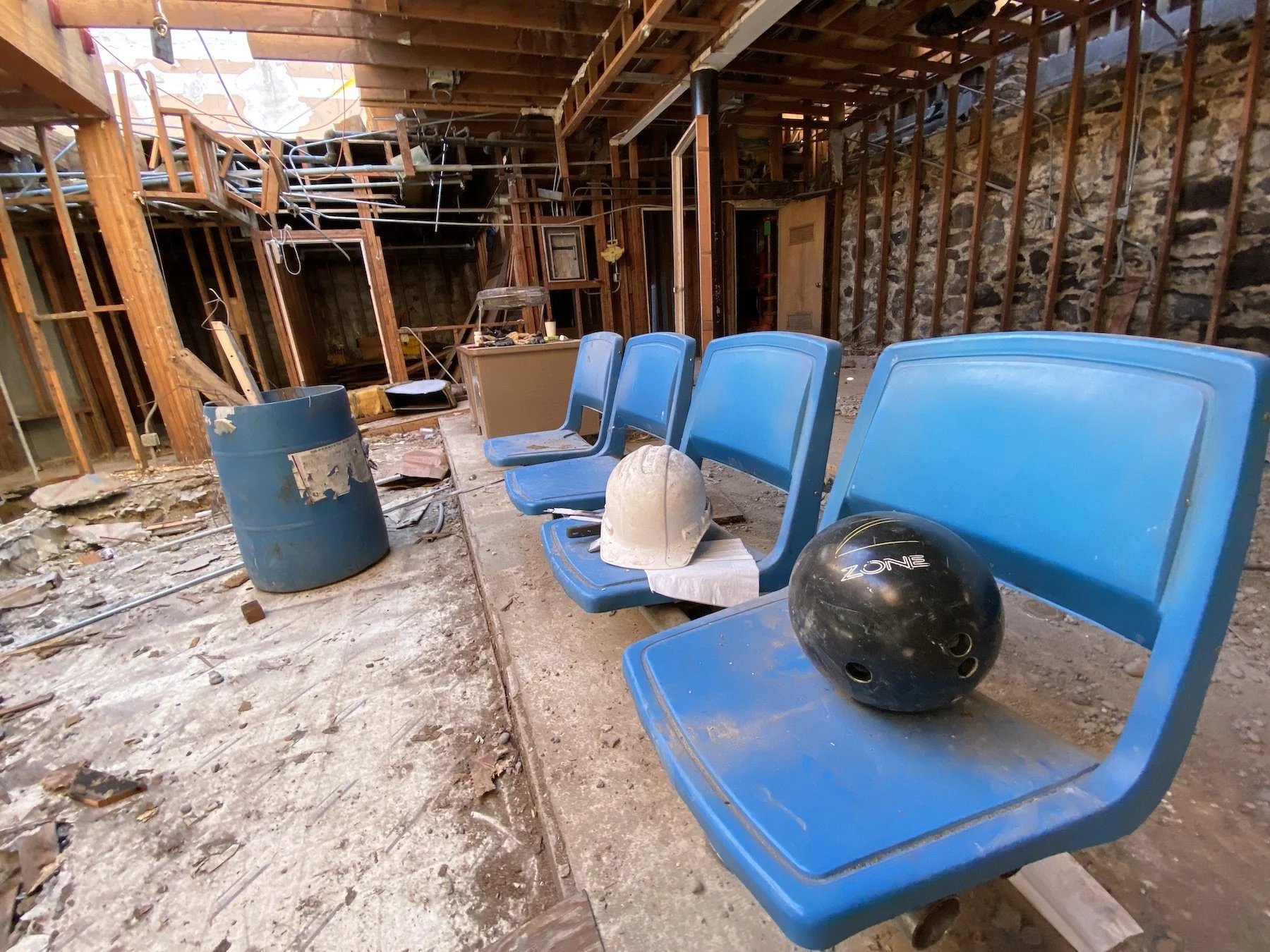 This dusty 8-pound pin slapper sat on the last remaining seats at the Recreation on Second Street, The Dalles late last week. Demolition of the building is about done and will soon turn to construction in months to come. P.S. I threw that 8-pound ball for 8 straight gutters when I was 7. It was a personal best.