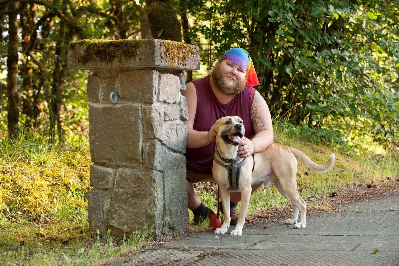 Chris Cline, a newly hired WAGAP department coordinator and a formerly houseless individual in Skamania County, enjoying a moment with his dog Tank. Cline has a big heart for animals and his community.
