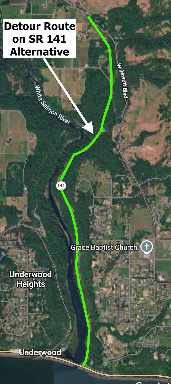 Drivers needing to go North on SR 141 will be detoured to SR 141 Alternative that abuts the White Salmon River.