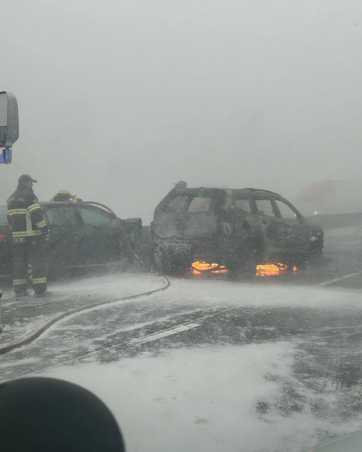 Snowy Conditions, Heavy wind contribute to I-84 Pile up this morning, Feb. 13