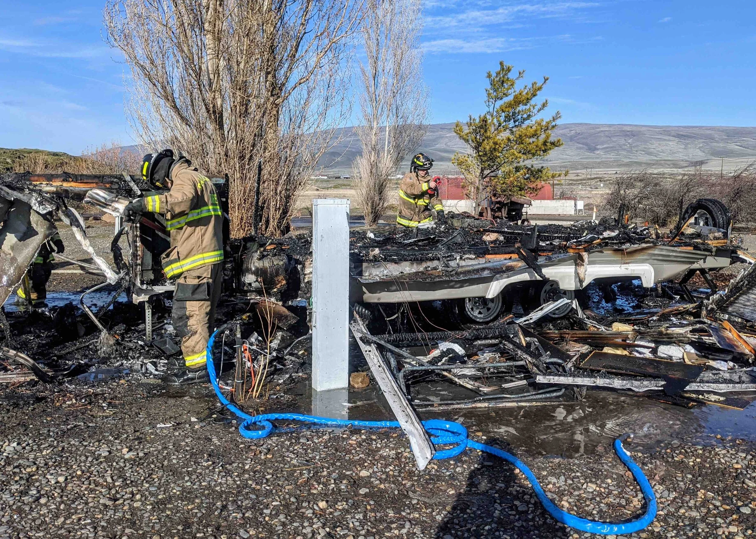 Brad Swing of Dallesport Fire, which is a volunteer fire fighting organization, said the fire was likely started by a propane tank or maybe a plug-in heater, as they had localized the start of the fire to the front of the RV.