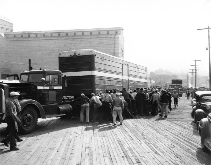 Rodger Nichols researched the incident that took place in 1949 when longshoremen at west coast ports honored a strike by their counterparts in Hawaii and refused to unload a shipload of pineapples. The union was not represented in The Dalles, so the ship headed up the Columbia and attempted to unload its cargo at the local port. Soon longshoremen descended on the town and a riot ensued.